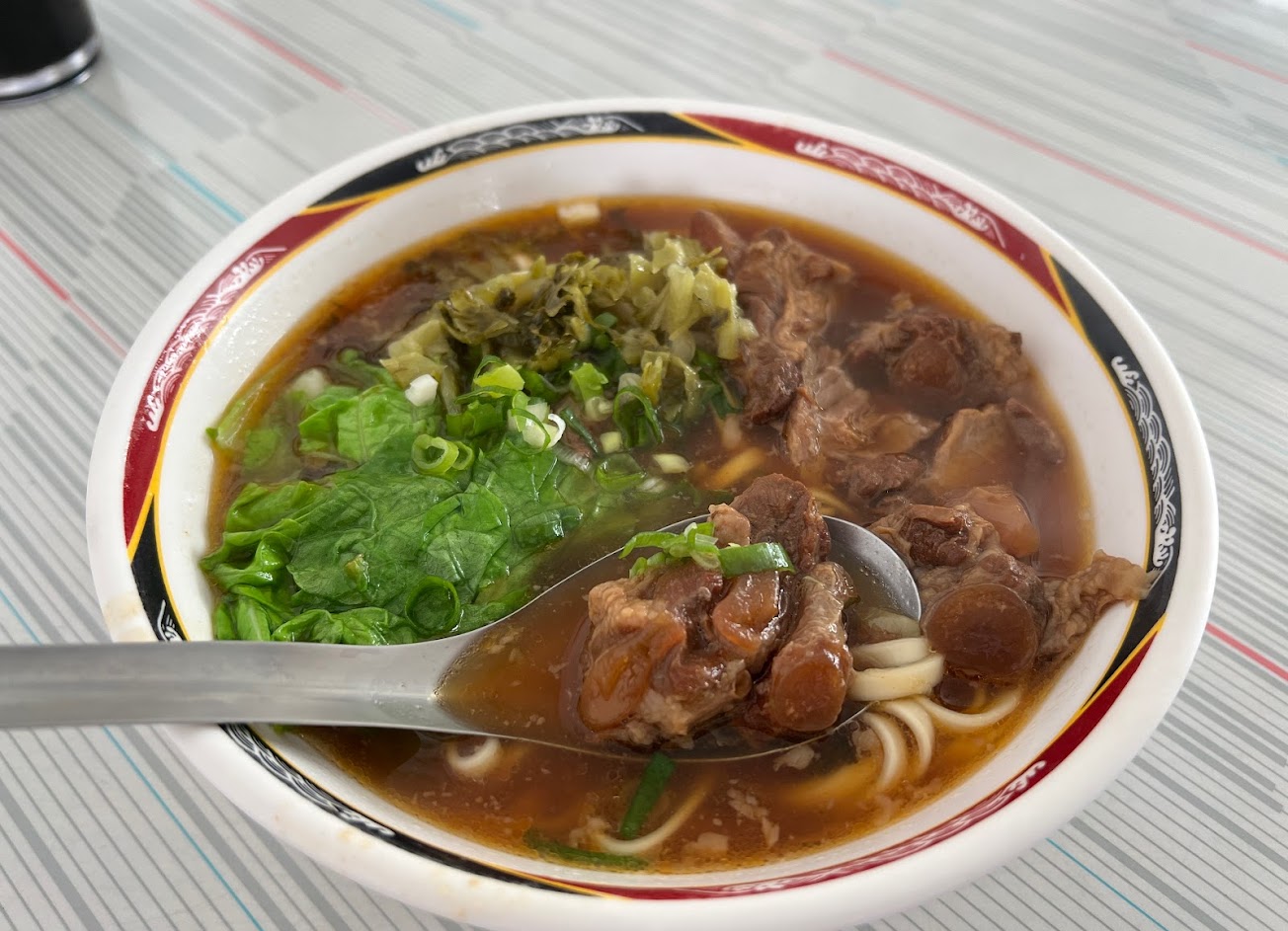 排骨麵的排骨很軟嫩好吃,湯頭也不錯。可惜麵是一般機器做的麵,就顯得普通了。水餃不大顆,餡屬多汁,只是量不多,就是一般水餃。不會特別推。是個地方居民平常來吃午餐的地方。人滿為患,不會踩雷
