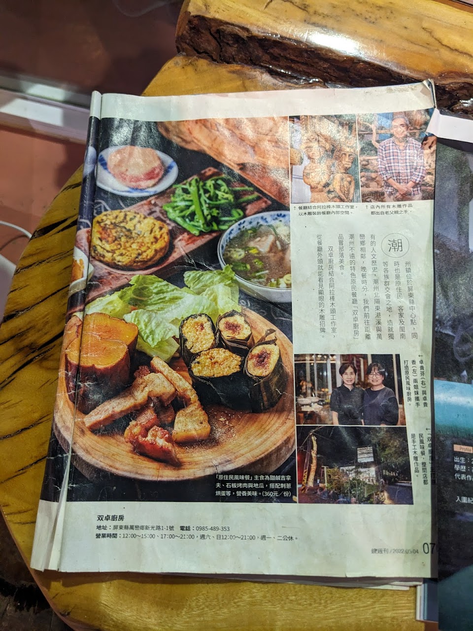 來二峰圳戲水,搜尋鄰近的午餐,偶然發現評價高的原民特色餐廳,因沒有預約,坐在石板桌及木頭藝術品中用餐,更有一番風味。