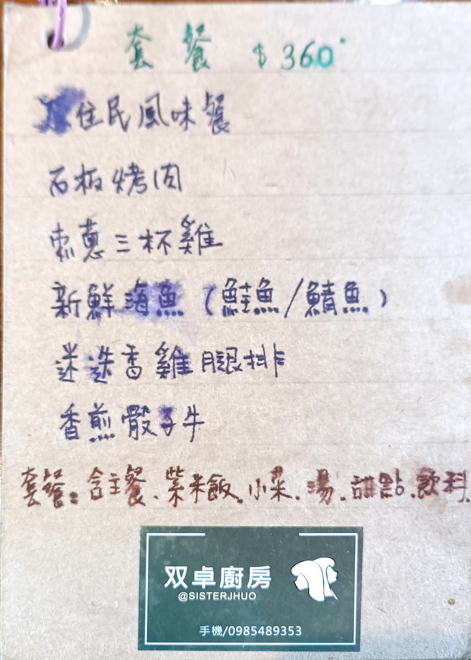 料理不複雜但非常好吃,今天點了三種套餐:原住民風味、石板烤肉、迷迭香雞腿,都不賴。
