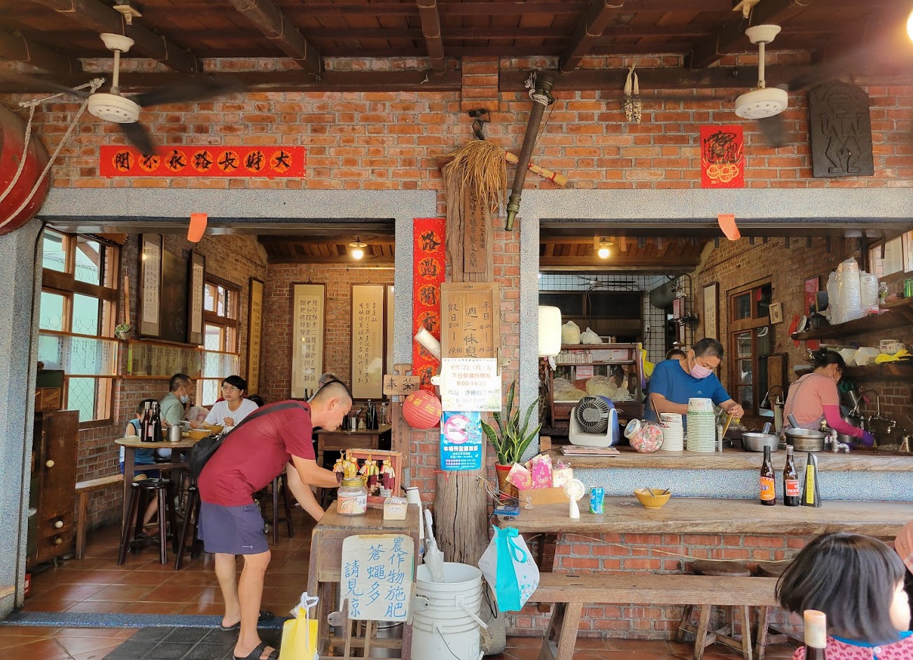 走進店裡開放式廚房會看到老闆正在柴燒灶台上煮麵,桌椅都是小時候在阿嬤家會看到實木圓桌或正方形桌和長板凳,桌上放著復古玻璃瓶裝的辣椒醬和烏醋,各式各樣的小菜放在老菜櫥裡面,真的好懷舊…