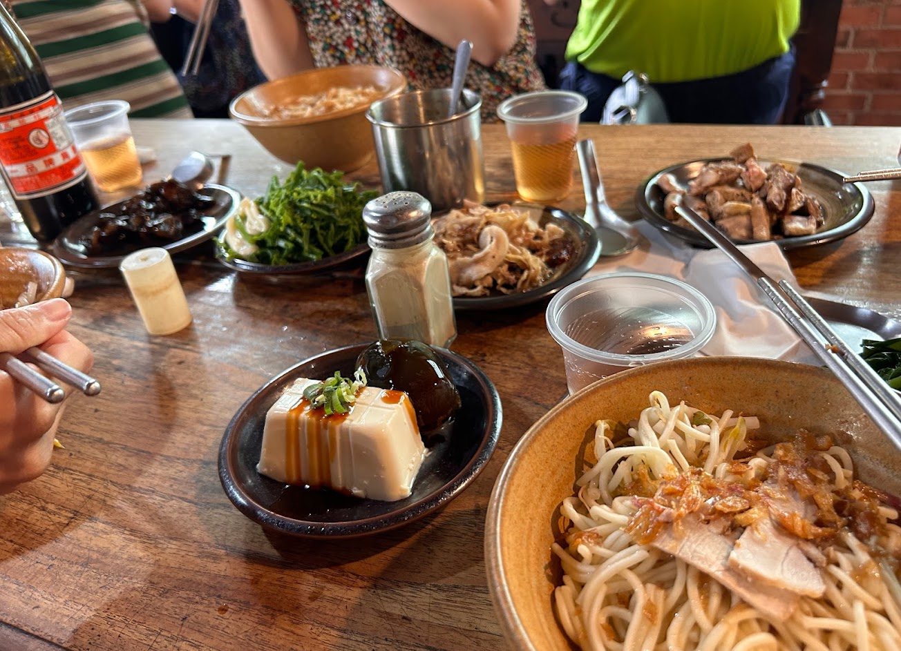 點了油麵湯、粿仔條乾麵;涼拌木耳、過貓沙拉、滷味小菜!