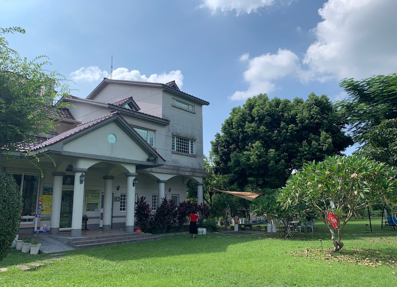 屏東幸福莊園民宿榮獲全台十大好客民宿之一,佔地遼廣,左側香草區,左前側芒果區,前庭種緬梔,有最佳攝影點,風景很有歐式風格。