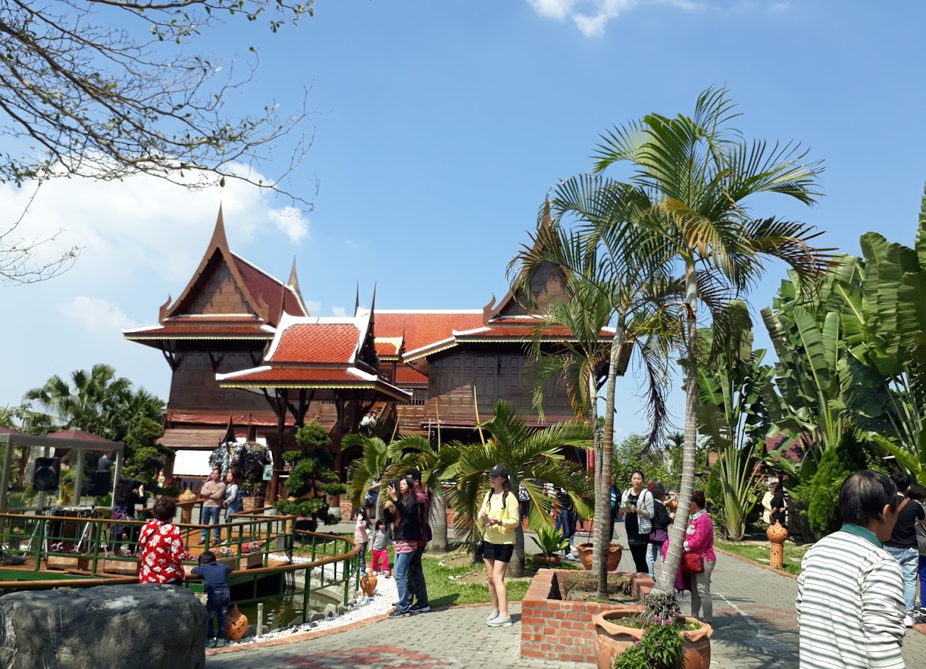 一個算不錯的觀光景點,要進場一人需要花100元購票,全部可以抵消費。進入園區後,映入眼簾的是一棟特殊泰式風格的高腳屋,園區內有寫湄公河的小橋和流水。坐著喝茶聊天的地方是一個一個泰式的涼亭 ,但唯一的缺點亮庭四面鏤空在戶外,不知為何要拖鞋才能上去,因為涼亭的地板並沒有非常的乾淨。