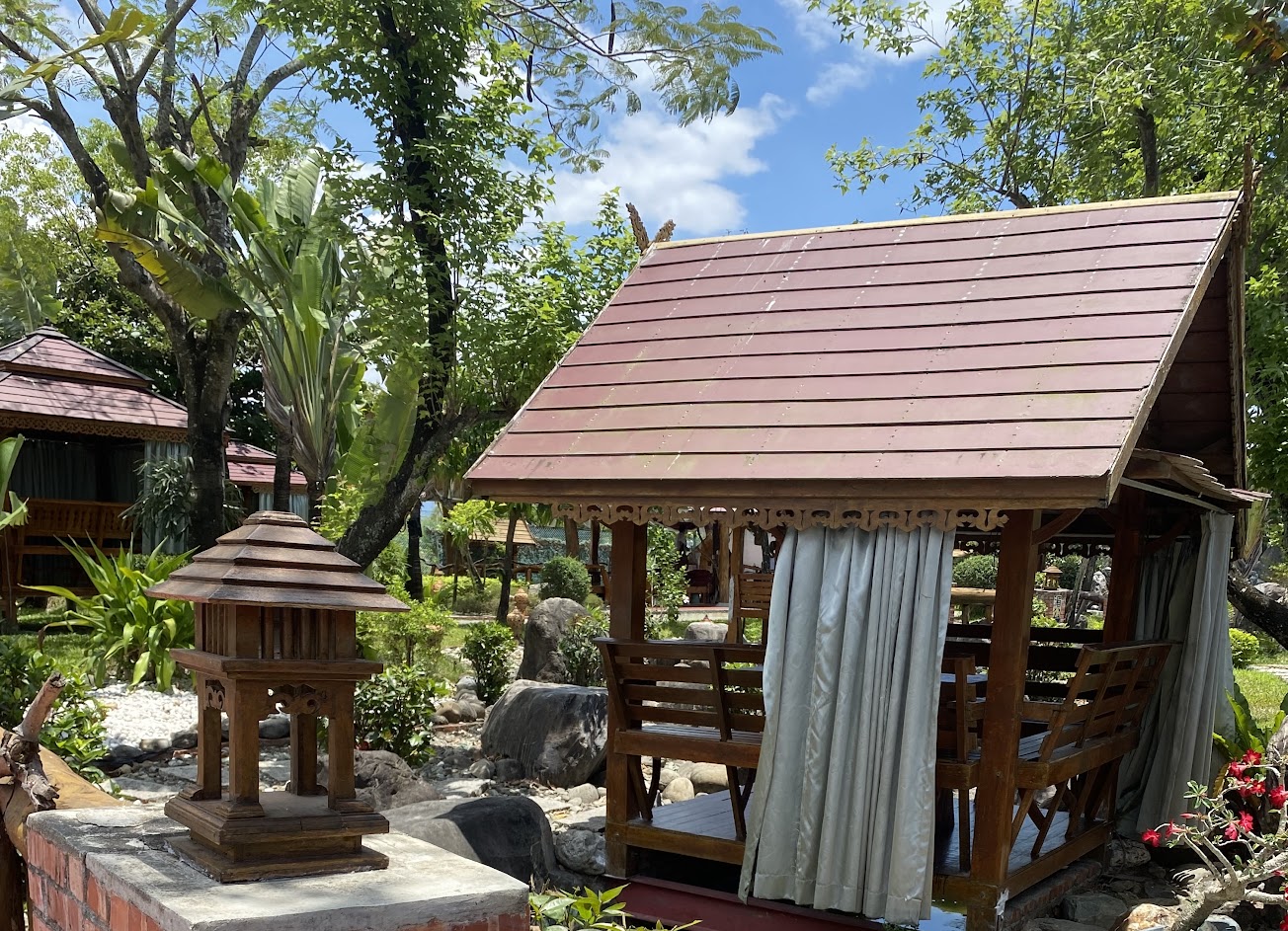 環境相當的優美,有大大的泰國神廟,各種戶外小涼亭,以及清幽的小橋流水,環境上絕對是給了大大的滿意,戶外難免會有蚊蟲,可以自行攜帶防蚊液,吃飽飯後在園區裡悠閒的坐著,那次去非假日,傍晚用餐後就一路待到了晚上,非常愜意。
