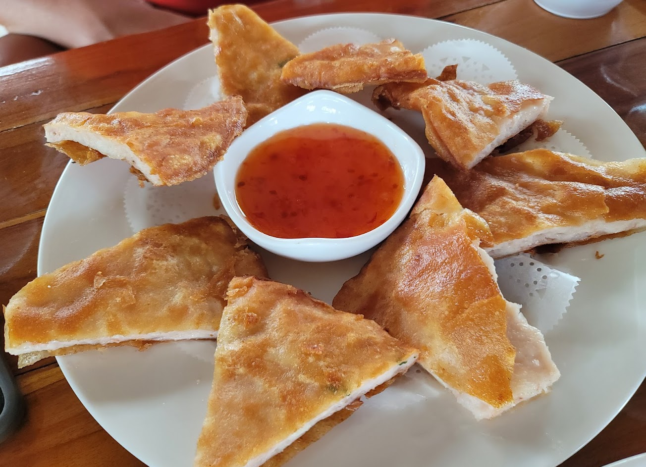 |月亮蝦餅^泰式料理理必點的菜品,厚實蝦餅,外表酥脆,沾上甜辣醬先飽腹一下
