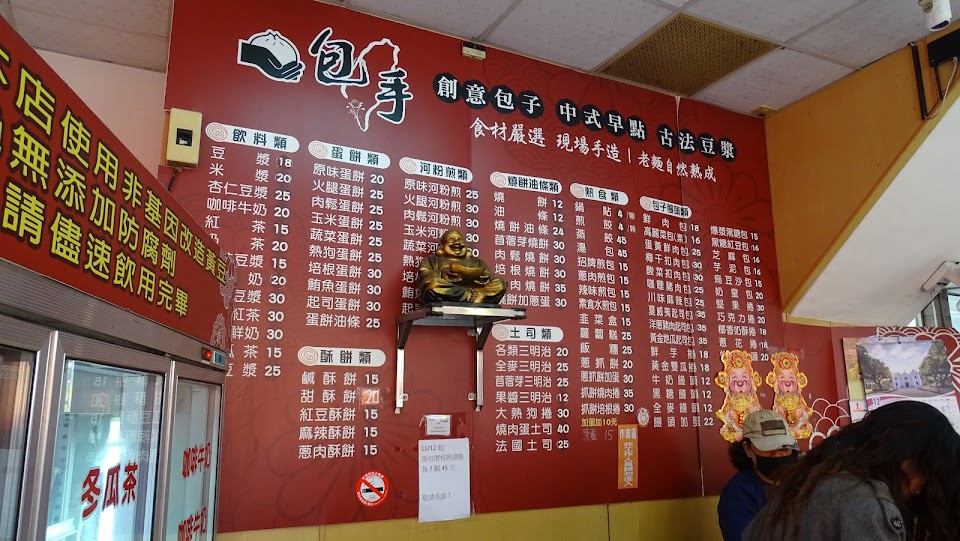 蔥肉包、水煎包、辣煎包、韭菜盒子這類,內餡飽滿皮Q軟香酥很好吃,包子是招牌,口味很多、鹹甜都看起來很好吃,但有次吃梅乾菜肉包,肉有點不好的味道,可惜! 現場還有很多做好的餐點,水果蔬菜三明治不錯吃,其餘沒吃過。 豆漿濃郁,好喝。 某次看到有一位長輩在問關於蒸爐裡面包子口味的問題,可能長輩耳朵不好,店家小姐口氣就越來越大聲、越來越不耐煩,在旁人聽起來就像是在吼….當下感受是不舒服的。