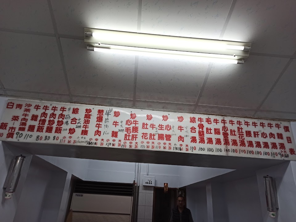 店內沒菜單,只有印在牆上的菜單,只好拍下來討論!店員阿姨過來問要點什麼,一開始我們7個人,討論要3碗牛肉湯,7碗白飯,因同行有人去廁所,其他4碗是不是要全部牛雜湯我們還不確定,所以跟阿姨說不然我們等等再到前面(煮餐區)點餐!因為剛剛都只是討論,沒有正式跟阿姨說要點餐!沒想到阿姨離開後,竟然就直接出菜3碗牛肉湯、4碗牛雜湯、7碗白飯!所有人傻眼,跟阿姨強調我們剛剛不是說等等過去前面點???阿姨跳針說,剛剛你們跟我說這樣,我就讓前面煮了啊!!