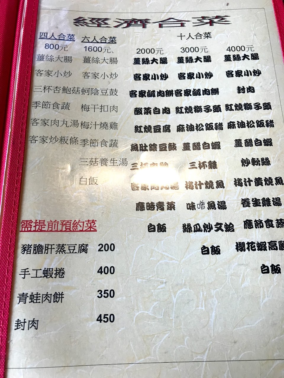 個人喜歡梅干扣肉、老蛋豆腐、薑絲大腸和酸菜白肉湯