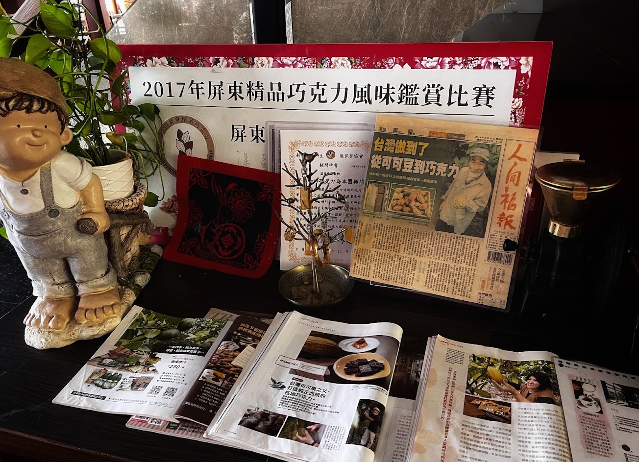 老闆很親切、和藹可親、還介紹親手培植的咖啡、很好喝、特推、可可豆製品濃醇香是鎮店之寶