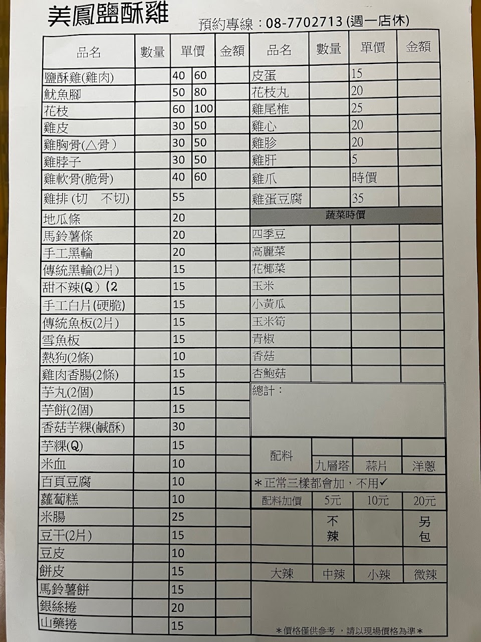 2024最新在地推薦餐廳的菜單_美鳳鹽酥雞的菜單、圖片