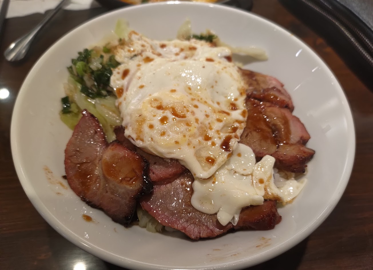雖然看起來只是叉燒+半熟蛋+青菜,