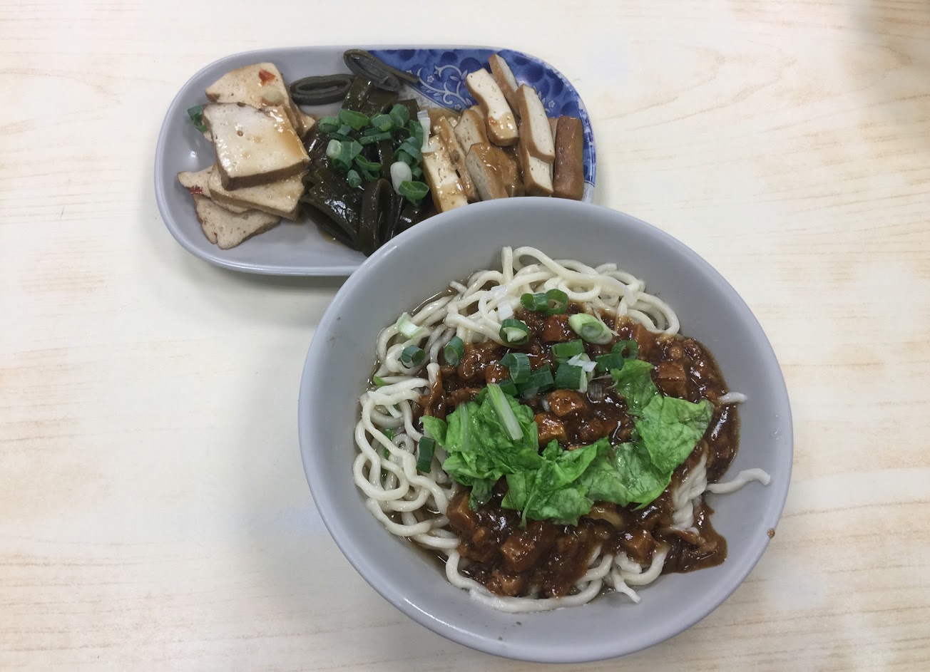 價格平實、用的麵條為白拉麵,炸醬麵不怎麼香,份量因為麵條關係乍看下很多,但是口味普通平淡無特殊;若不喜蒜味的記得跟店家先不要上醬油膏。