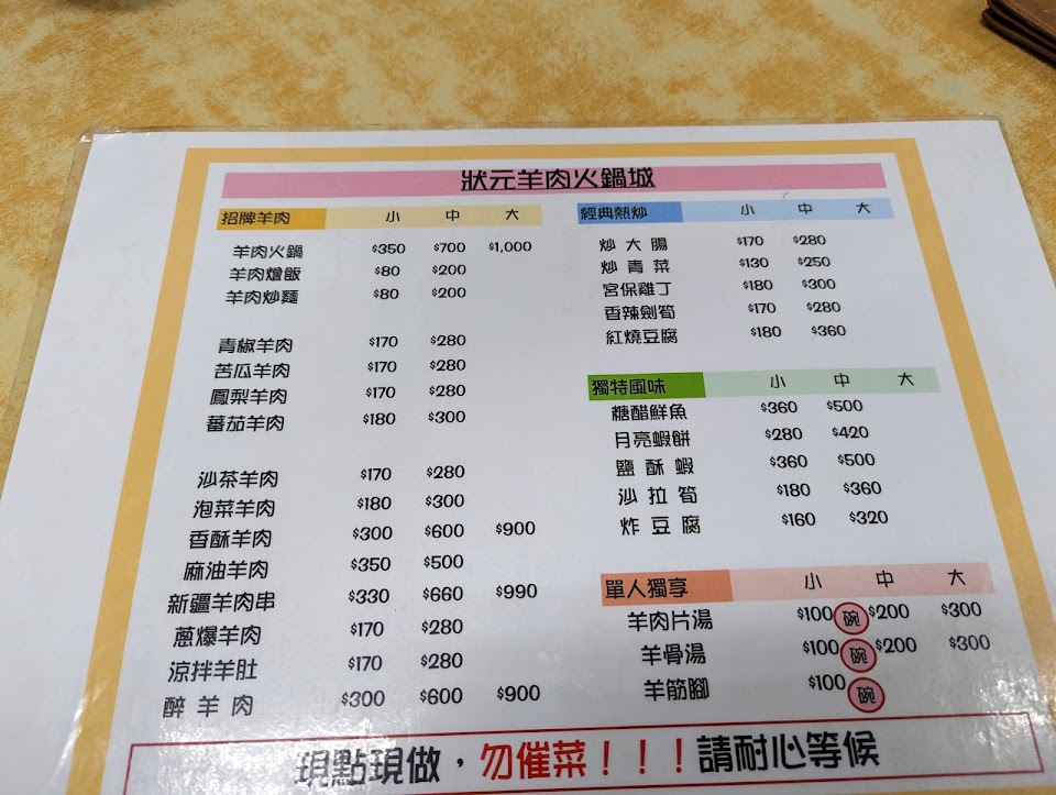 2024最新在地推薦餐廳的菜單_狀元羊肉火鍋城的菜單、圖片