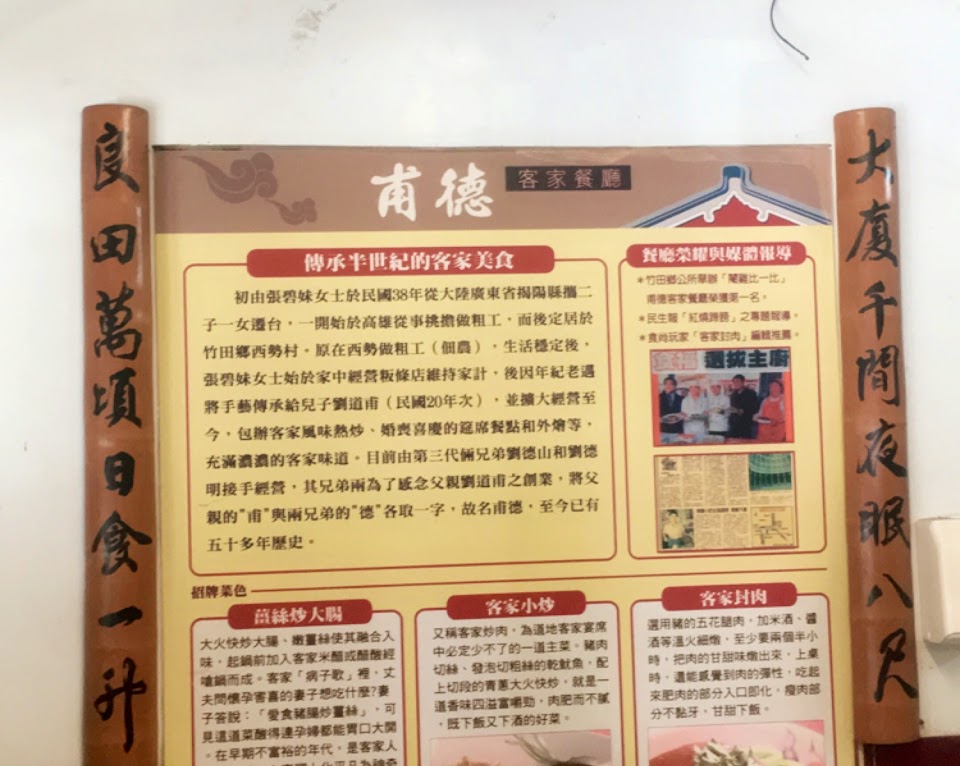 傳統客家菜的火候甚足。不用擔心價格,因為很實惠。接棒兄弟倆合作,一家子和樂,令人稱讚。