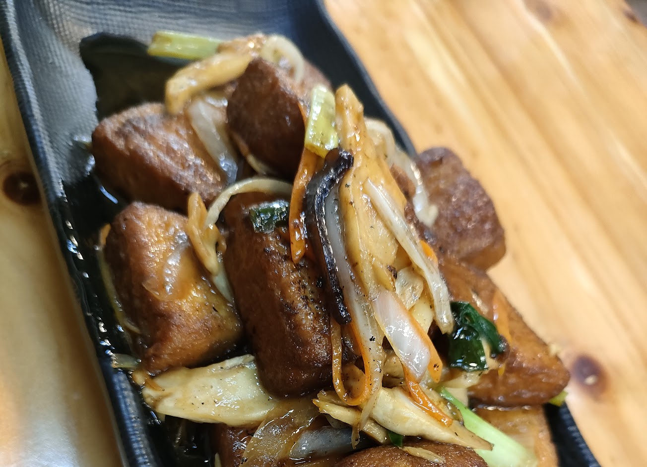 選用Q彈產銷履歷臺稉9號米,大火快炒拌入魷魚、豆干、三層肉的客家小炒三味,每一粒米都挾帶蛋香與鍋香氣,搭配富醬油香又有嚼勁的豆干與魷魚,好吃到捨不得放下湯匙!