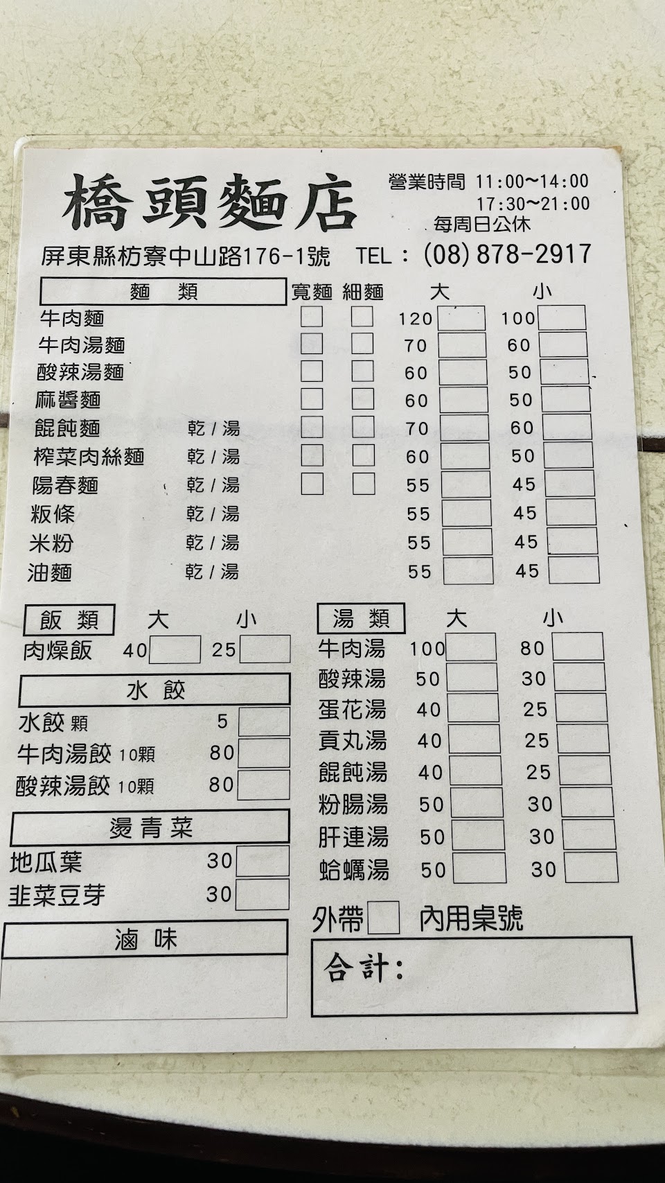 2024最新在地推薦餐廳的菜單_枋寮橋頭麵店的菜單、圖片