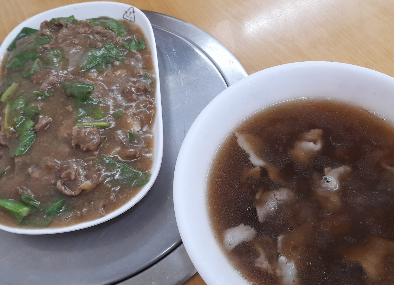 原本在旁買大腸加香腸!好奇走過去.點外帶洋肉排骨湯!還有蔥爆洋肉!太好吃了!真的讚!