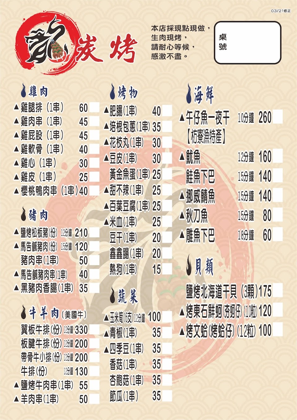 2024最新在地推薦餐廳的菜單_龍炭烤(漁村夜景居酒屋)的菜單、圖片