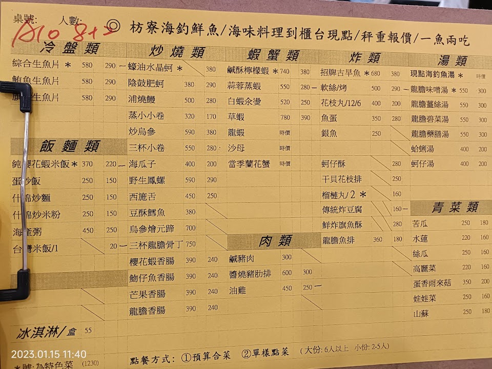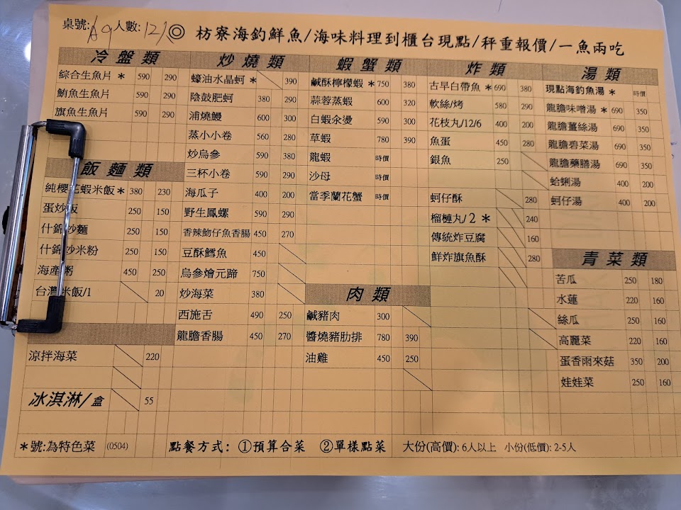 2024最新在地推薦餐廳的菜單_枋寮海鮮美食 – 阿達漁港餐廳的菜單、圖片