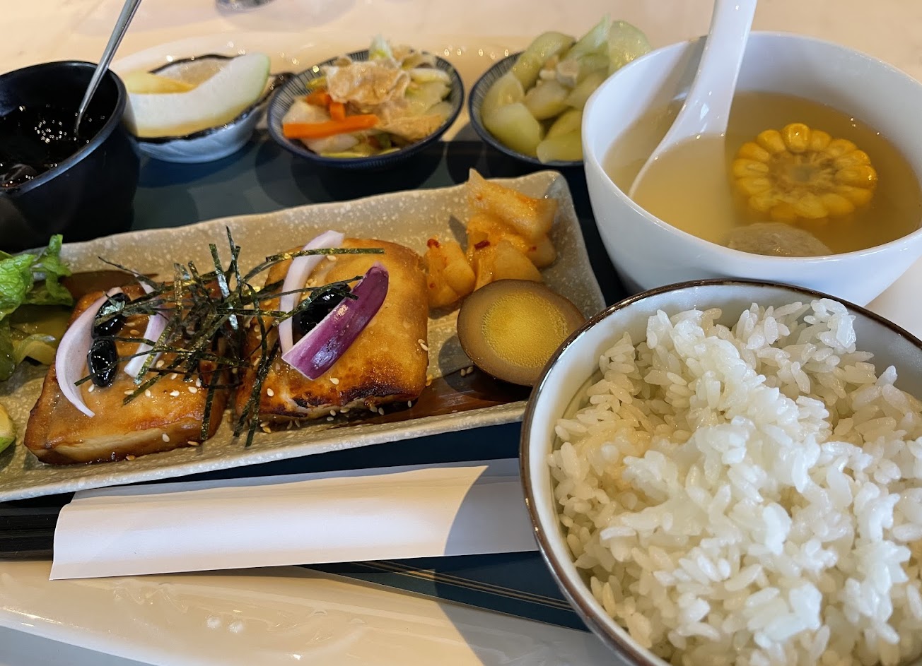 View真的很棒很舒服,餐點也沒什麼加工品,套餐有飯、主菜、小菜*2、湯、甜點、芭樂,精緻衛生,很適合想放鬆心情吃飯或三五好友來聚會