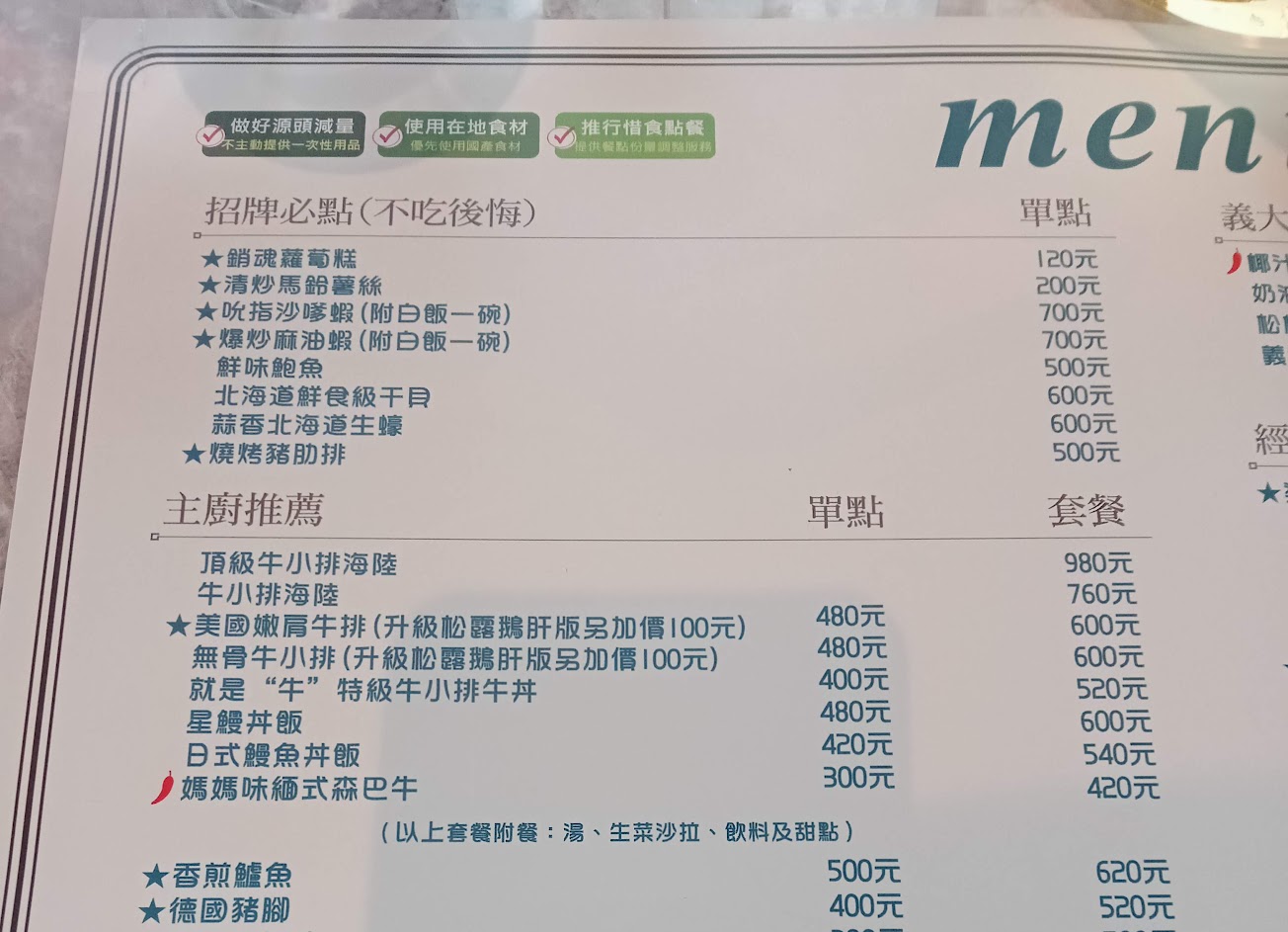 餐點相對價格來說,感覺沒有讓人驚艷,有些小失望?但若是吃氣氛佳、環境美是?????