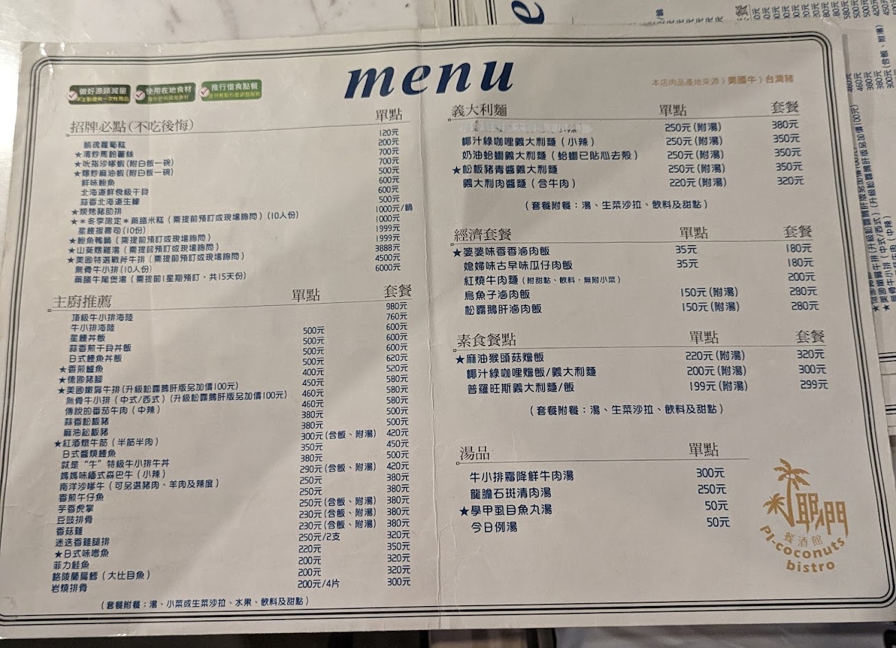 2024最新在地推薦餐廳的菜單_枋寮椰們海景餐廳Pi coconut的菜單、圖片