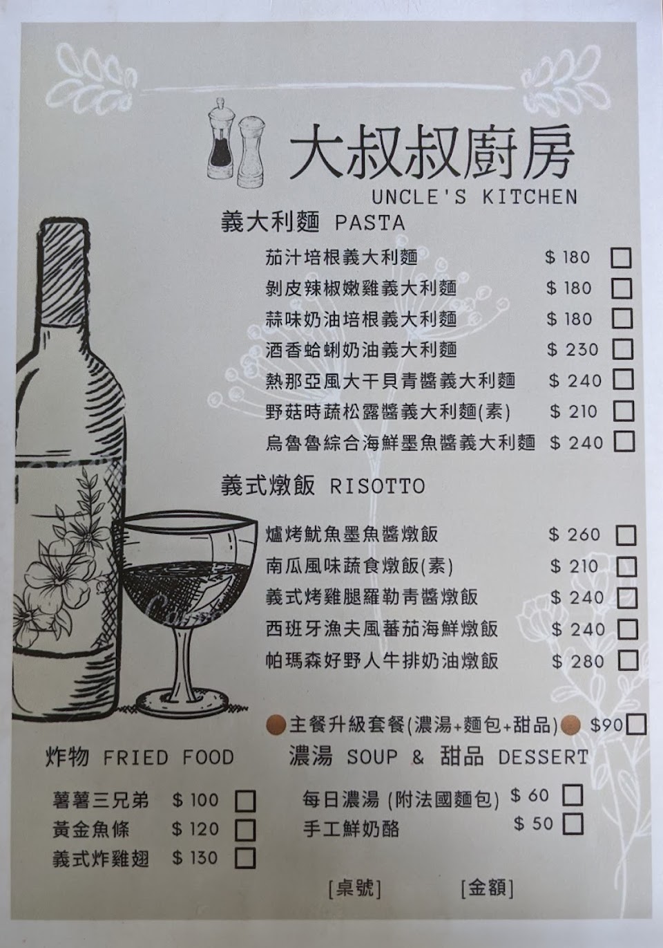 2024最新在地推薦餐廳的菜單_大叔叔廚房的菜單、圖片