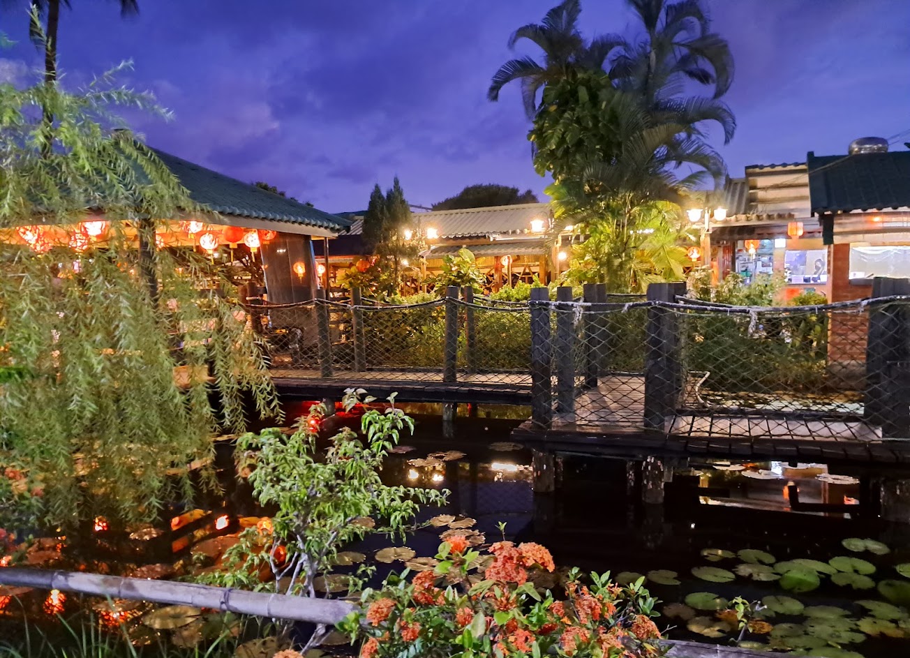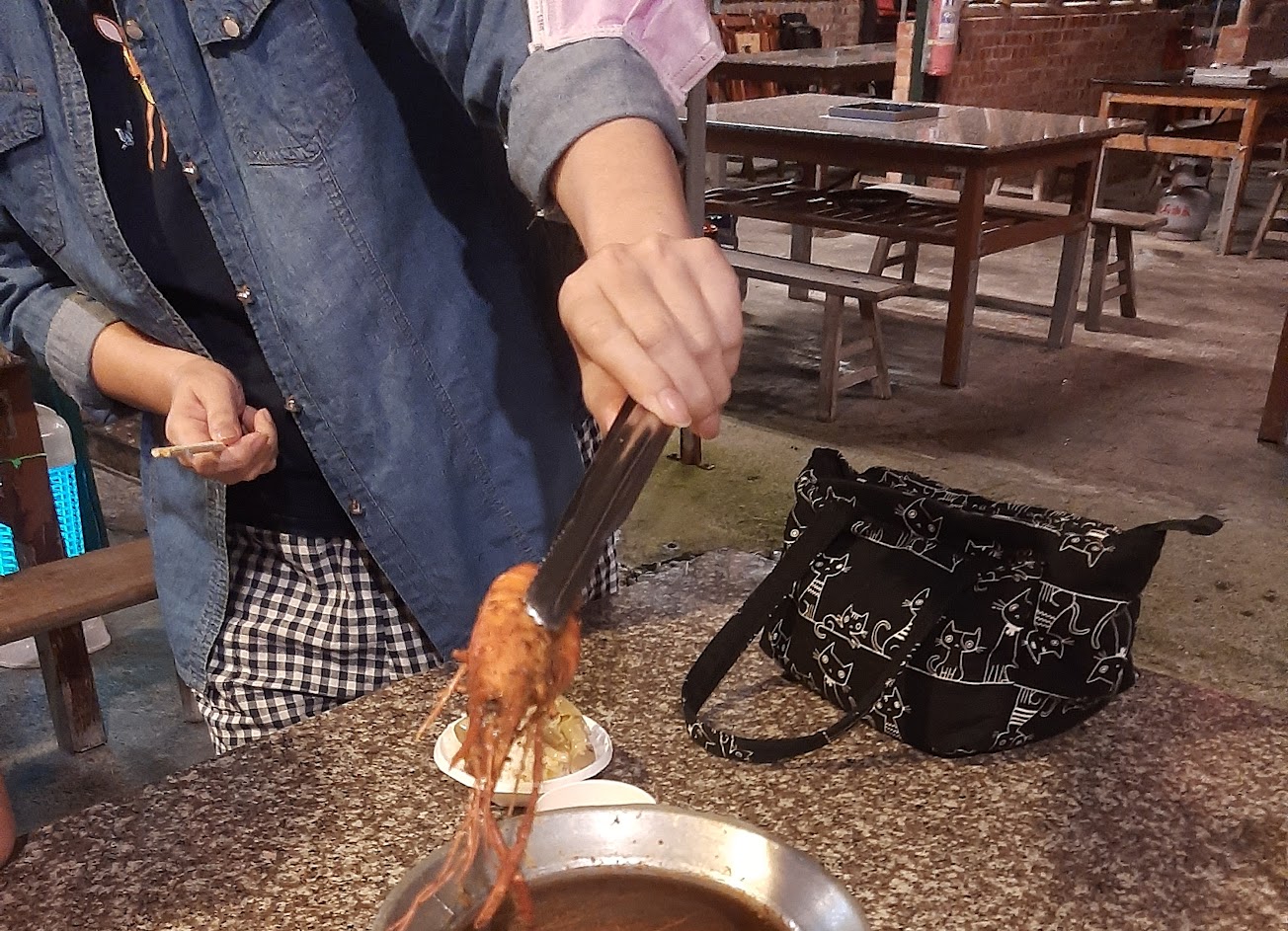 早有耳聞這家吃蝦的店生意很好,太晚來吃(晚餐時段)還有可能吃不到蝦(賣完了)。外圍用餐環境造景的很有氣氛,尤其是白天和夜晚有不同的FU,內圍用餐環境就熱鬧不得了,人爆多的,尤其是裡面餐桌應該也有近百桌吧,除了坐滿之外,還有許多人佔在桌旁等位置(都是現場自己找位)。因用餐人員夠多,故上菜速度還可接受,料理口味也不錯,但幾區的醬料白飯區容易缺貨,工作人員來不及補。整體而言,想跟著嚐鮮鬥熱鬧是可以去排隊體驗,但若要享受品質應該會許多負評,就看個人的需求自行評估嘍~對了,因為造景所產生的優美環境相對也招來蚊蟲,傍晚後要留意。