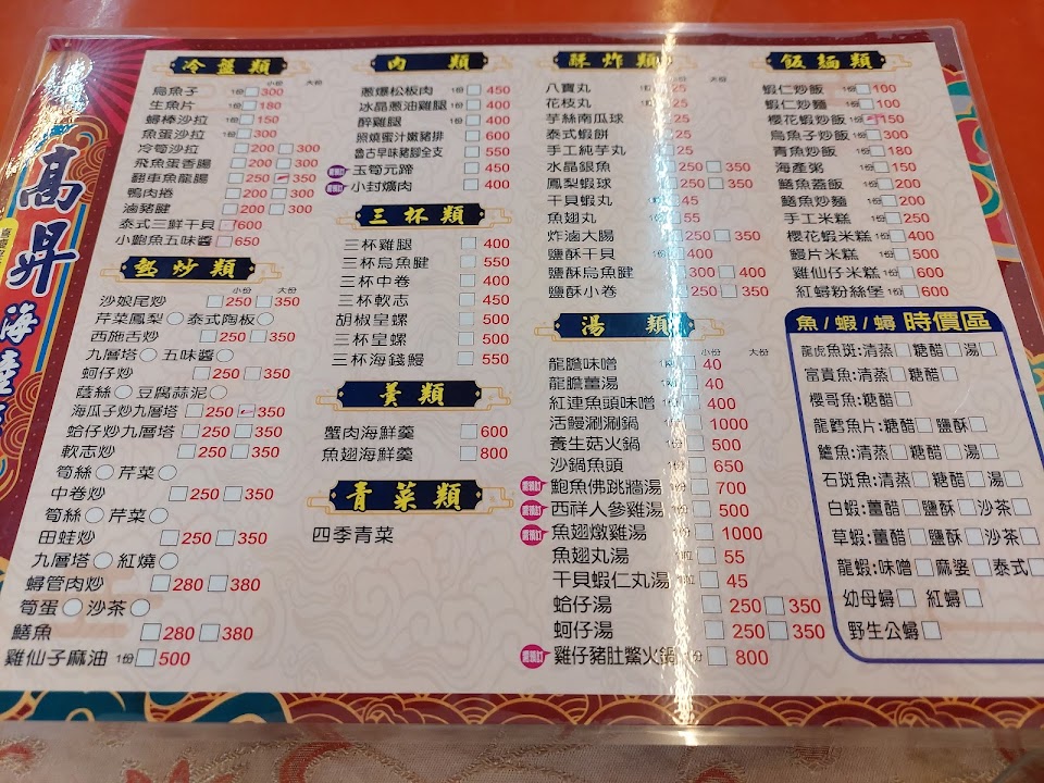 2024最新在地推薦餐廳的菜單_高昇海產店的菜單、圖片