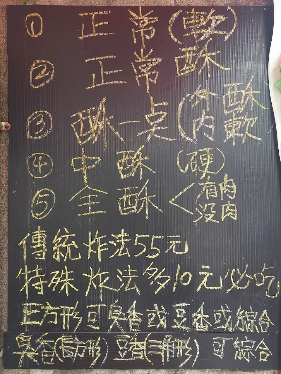 好吃的臭豆腐但老闆不太記得每個人點什麼,取餐時要自己提醒一下以免有遺漏的。酥度選擇很多,這次點大眾口味的酥一點就很好吃,長方型的整體酥度比較一致也較香。另外有個特殊炸法但老闆說因為炸功耗時只有人少時才開放點餐