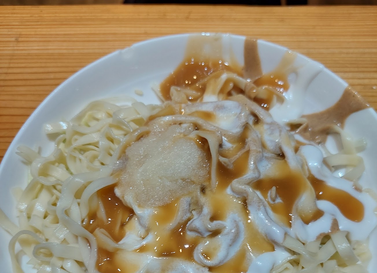 蒜泥完全融合在麵裡,有蒜頭香但沒有嚇人的嗆辣感