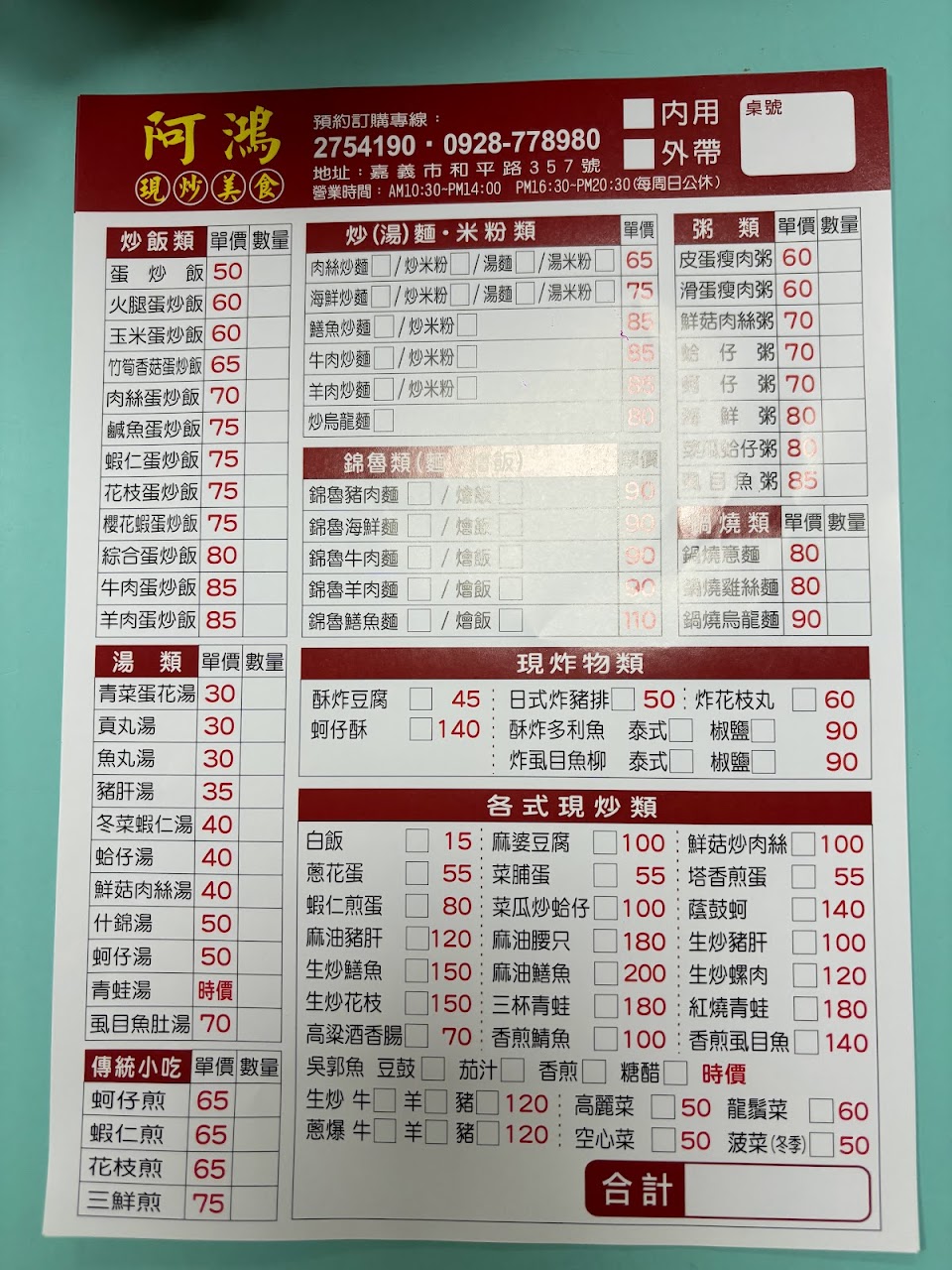 2024最新在地推薦餐廳的菜單_阿鴻現炒美食的菜單、圖片