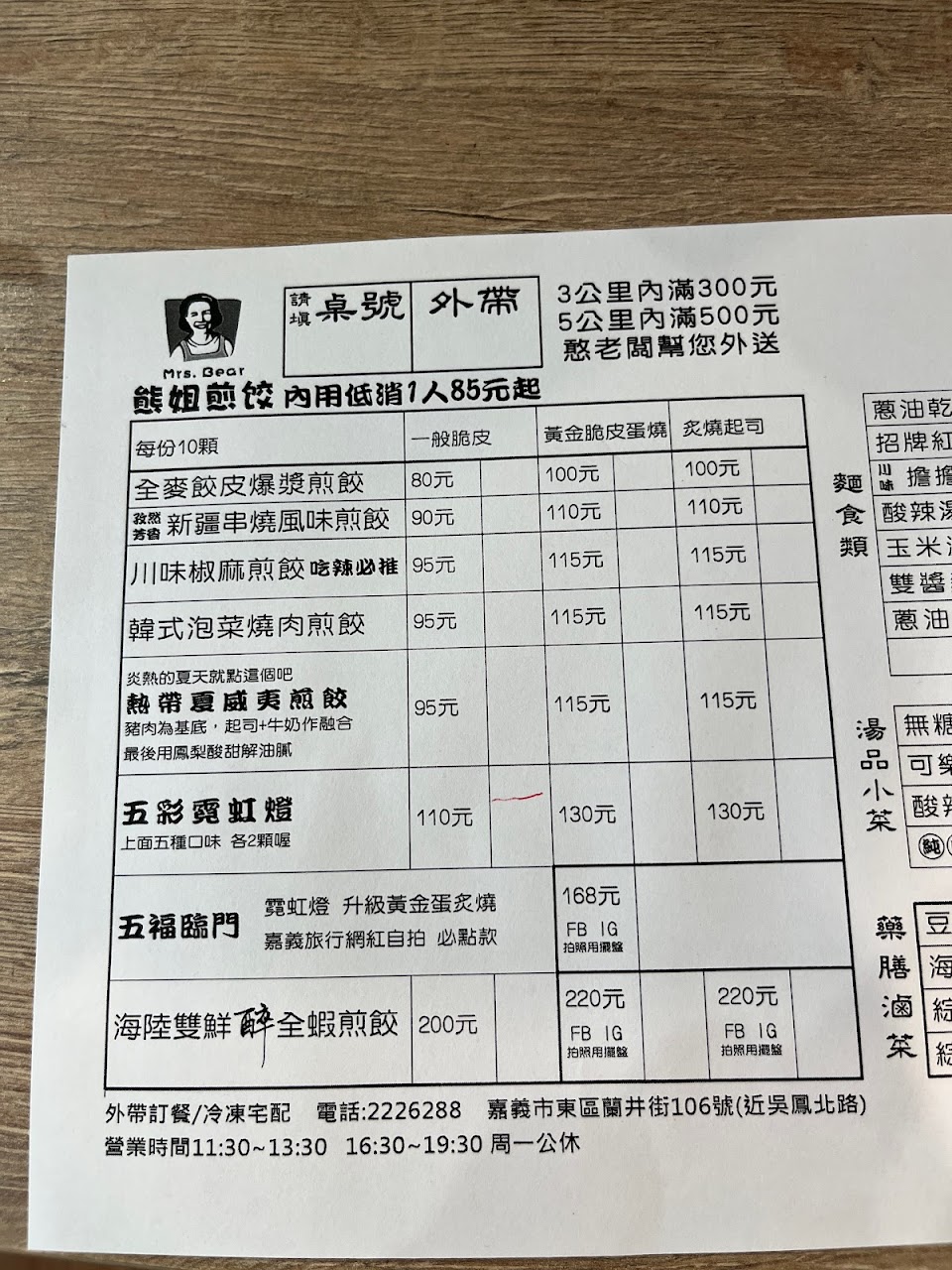 2024最新在地推薦餐廳的菜單_熊姐煎餃的菜單、圖片