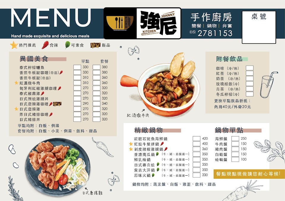 2024最新在地推薦餐廳的菜單_強尼手作廚房的菜單、圖片