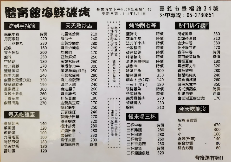 2024最新在地推薦餐廳的菜單_體育館海鮮碳烤的菜單、圖片