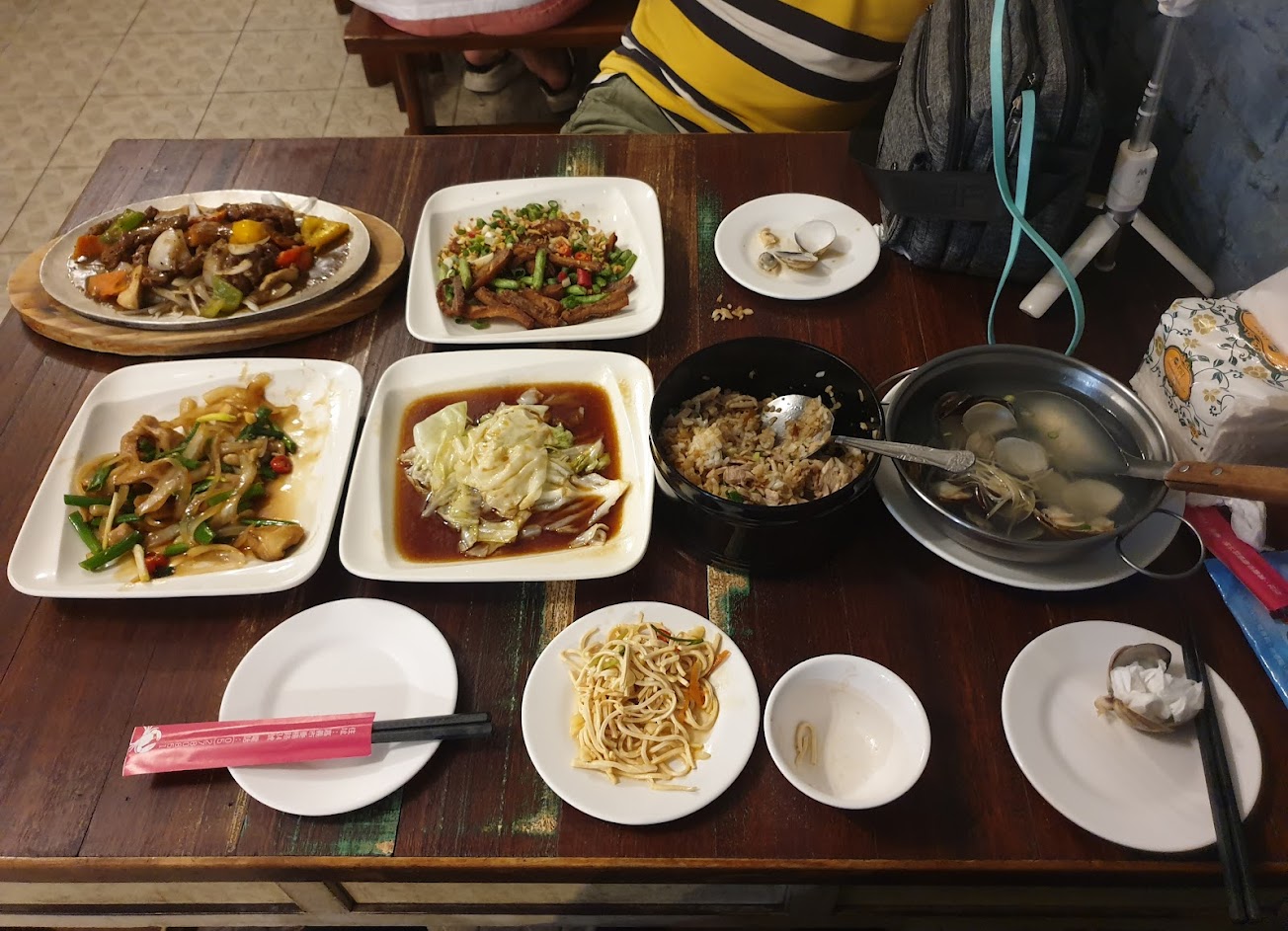 我這次點蛤蜊湯,裡面都是沙,蛤蜊肉也好幾顆都黑黑沙,烹調前置作業未到位。四季肥腸辣辣的不錯吃。炸午魚也可以。黑胡椒牛肉還可以。松板豬也不錯。