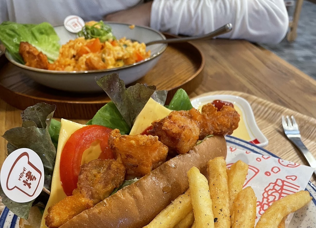 店家主打麵包都是自己手做,確實吃起來口感紮實。炸雞口味紮實調味也很好。