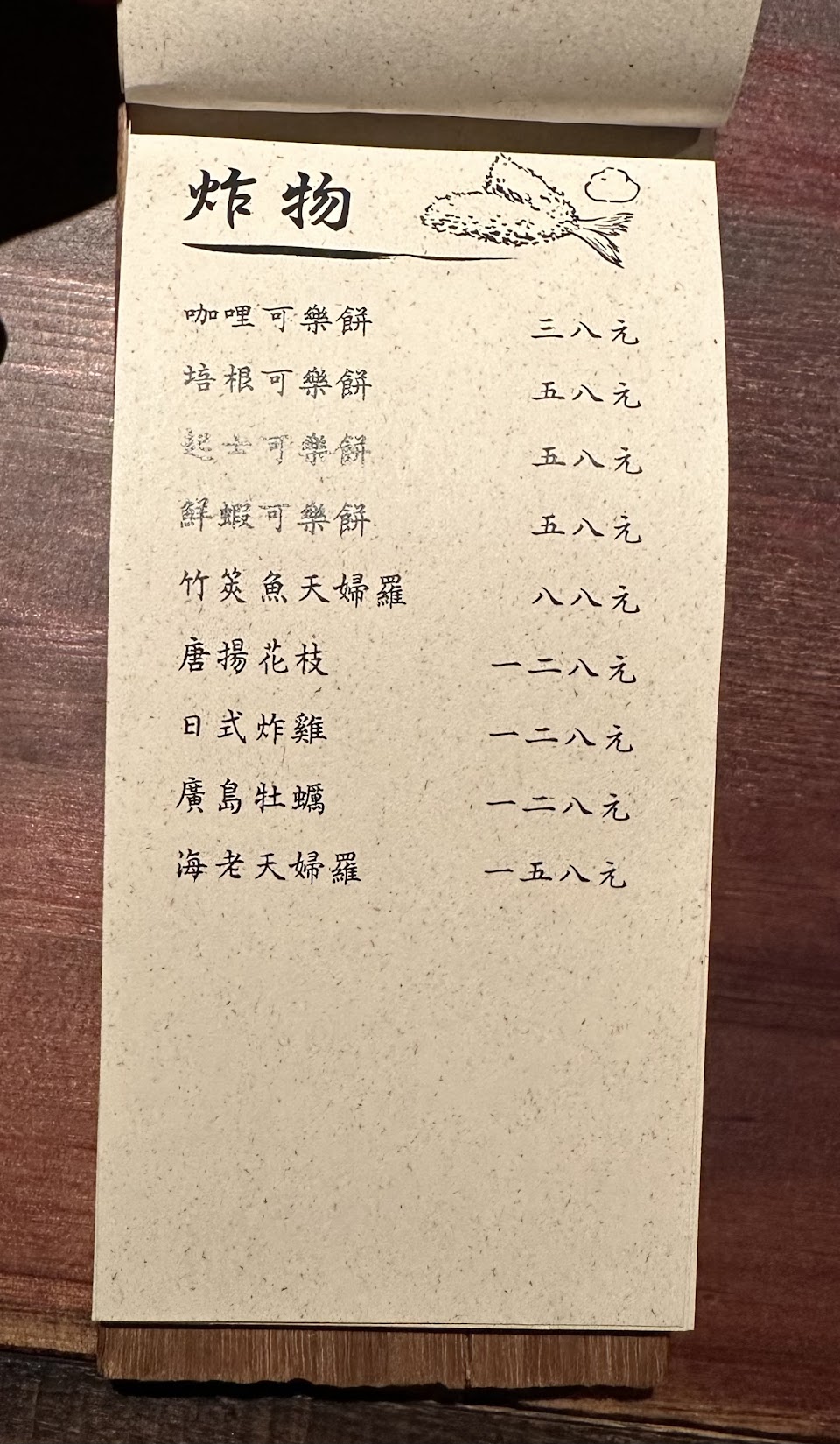 【餐點價格】中偏高價,建議是宵夜、小酌食用。