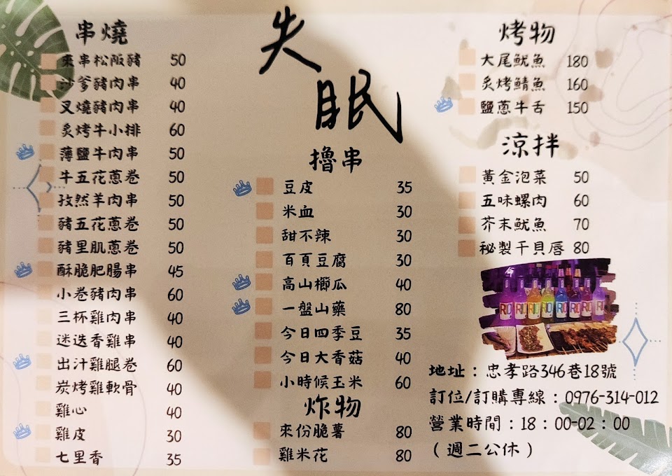 2024最新在地推薦餐廳的菜單_失眠燒烤的菜單、圖片