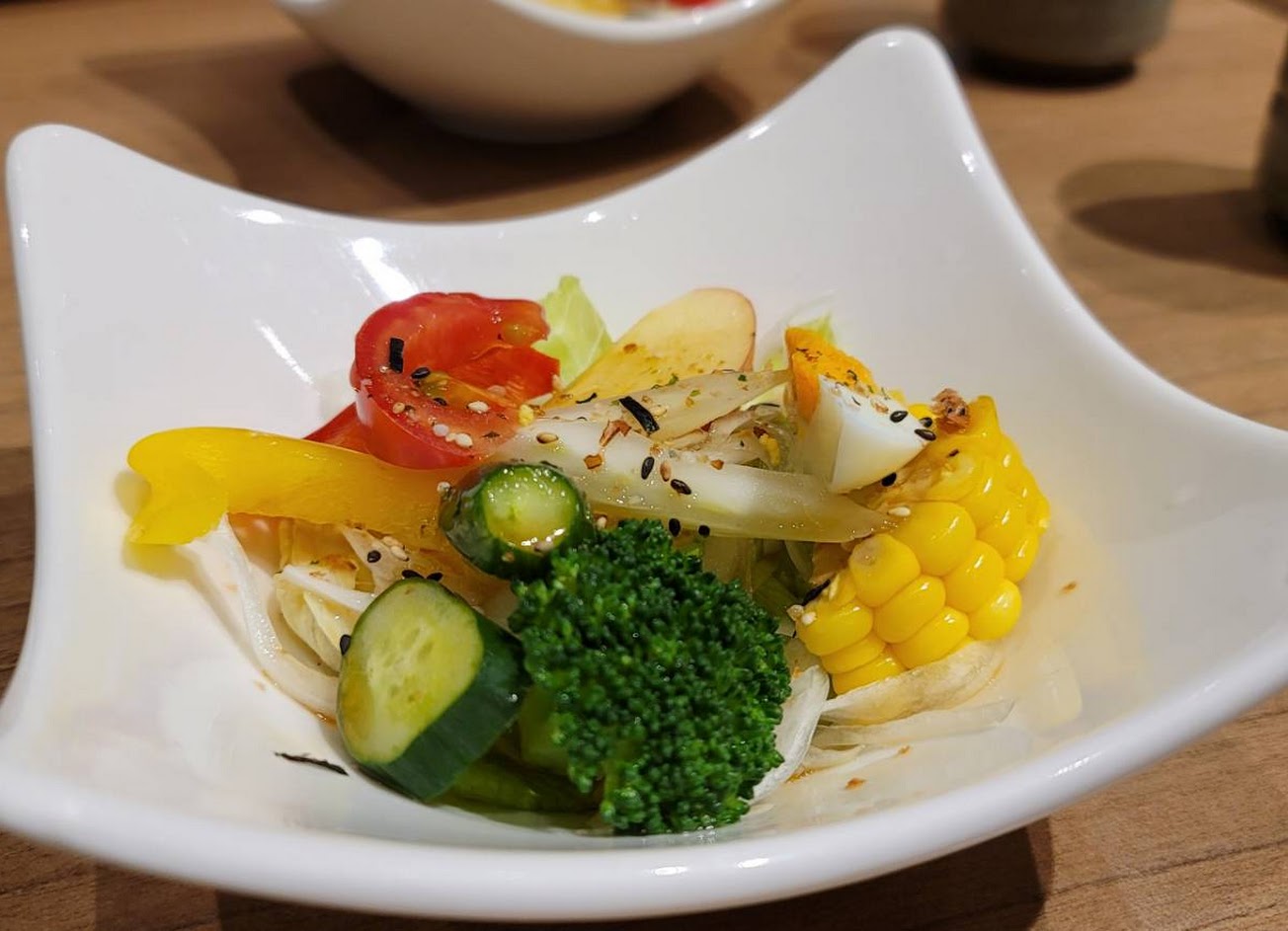 廚藝了得 沙拉好吃很開胃 茶碗蒸用料豐富 天婦羅炸得剛剛好 松阪豬…好吃 炒蔬菜也很棒 又鮮又脆