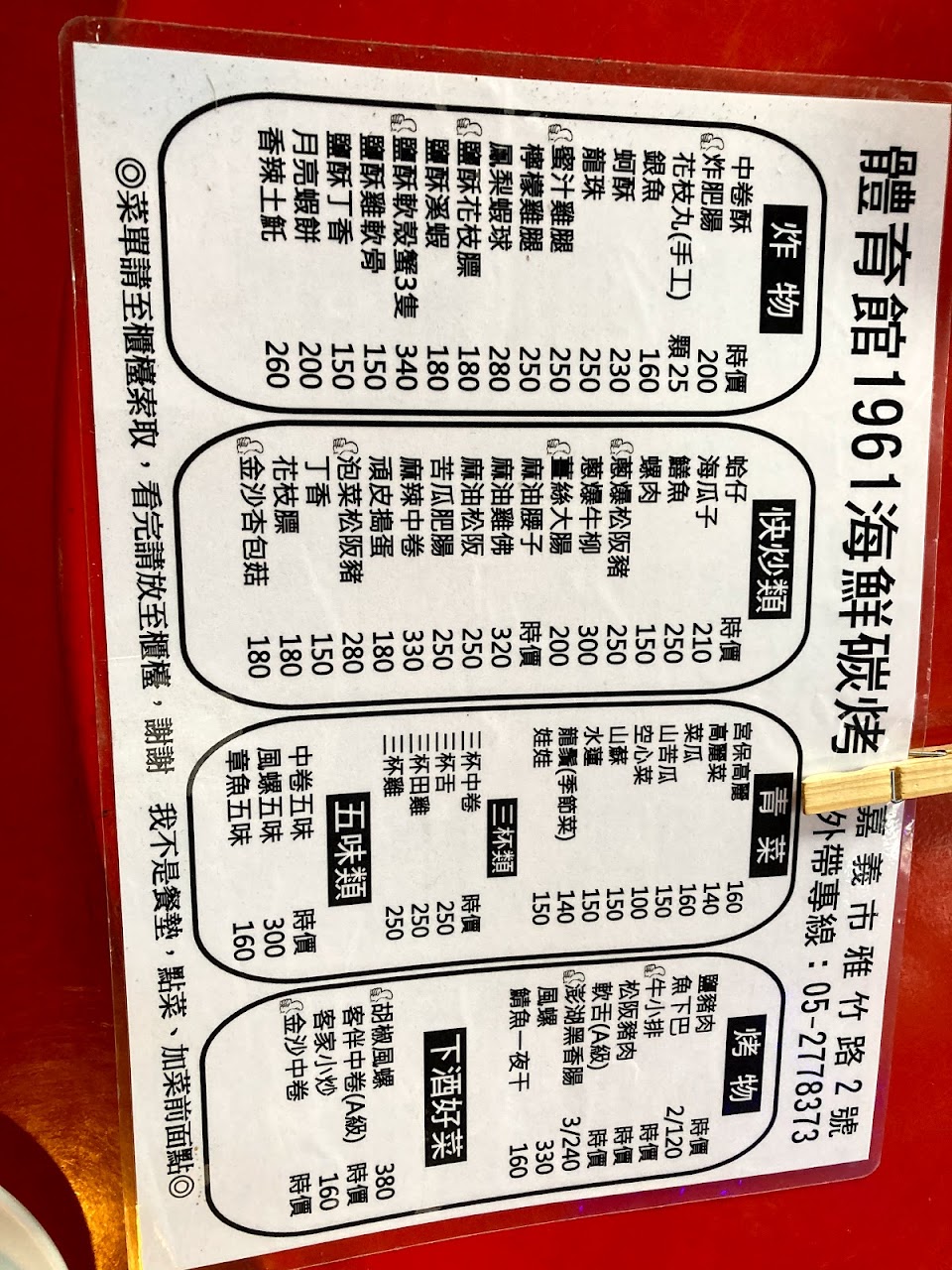 2024最新在地推薦餐廳的菜單_1961海鮮碳烤的菜單、圖片