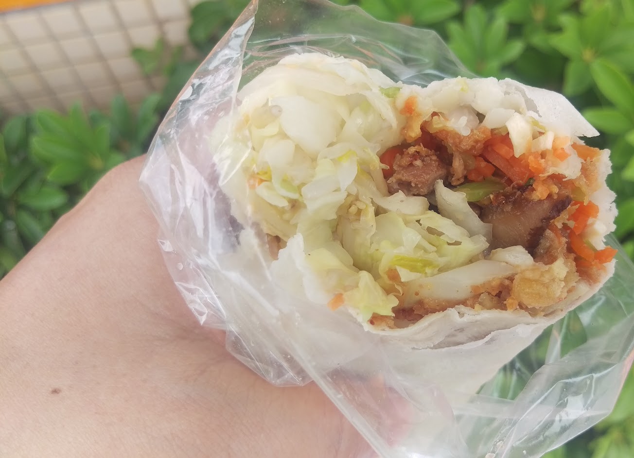 有原味辣味芥末瘦肉4種口味,一捲50元就能吃很飽,皮薄料多且清爽,老闆娘是外籍但口味是道地台菜,建議30分鐘內食用以免濕氣蒸發到餅皮口感會變軟爛,可別讓幸福變質嘍
