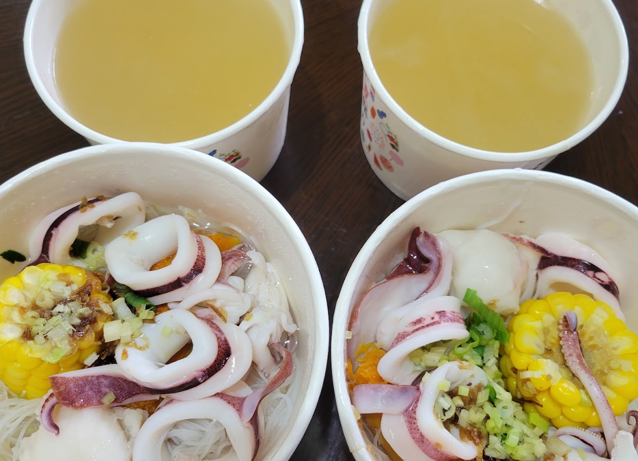 小卷非常的Q彈新鮮,米粉也好吃,但是湯頭對我們來講太甜了,如果維持原來的自然原味會更好!另外花枝丸很普通,沒有想像中真材實料的感覺。