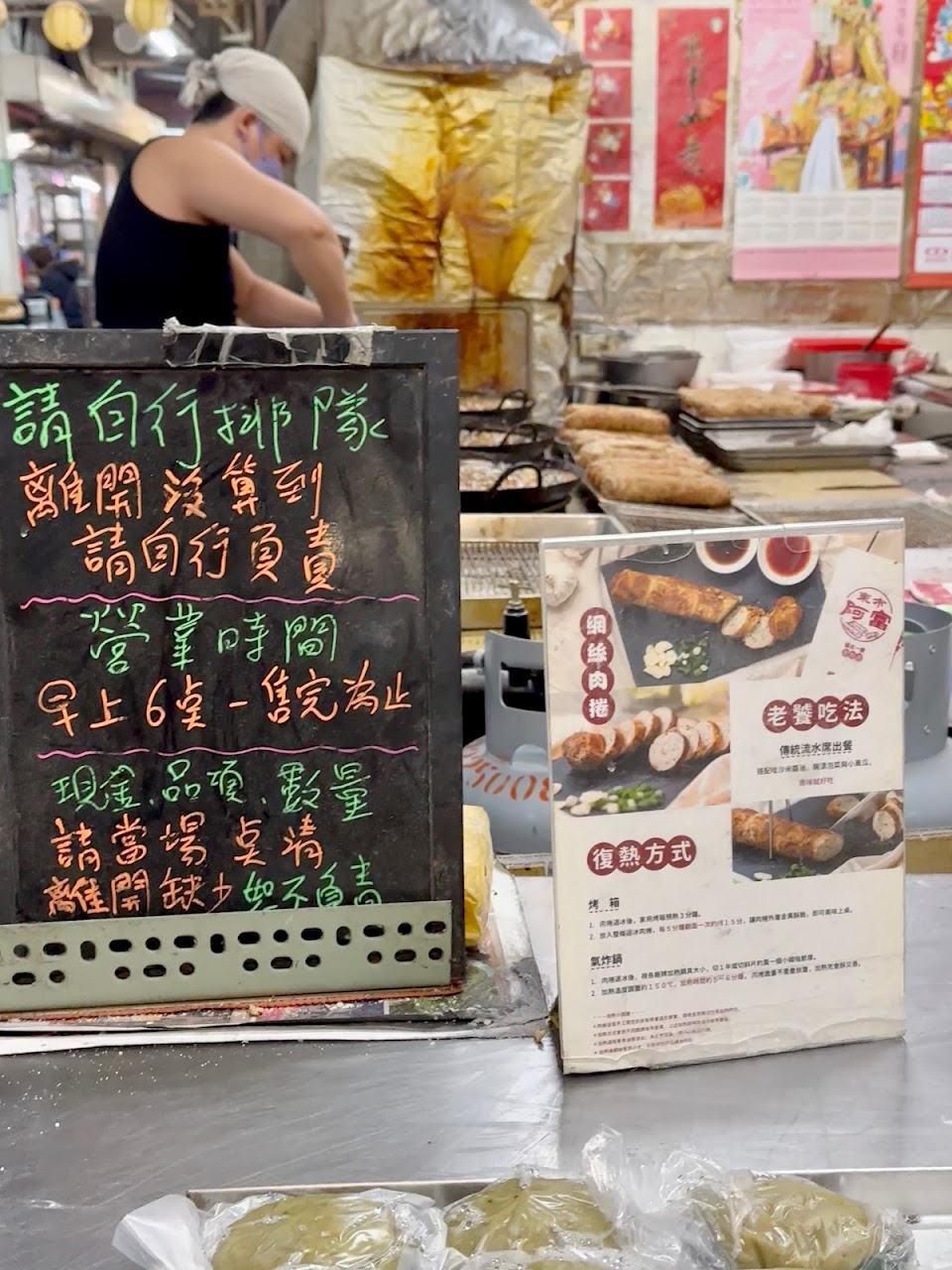 結果有一次剛好來這個市場吃牛雜湯就想到這間肉捲 還在找這間店時 明明是早上時段就排滿了人⋯ 是看到招牌沿著排隊人潮才看到排隊的尾?