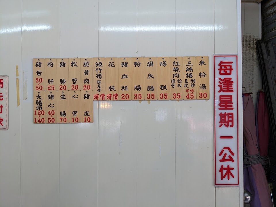 旗魚香腸,三絲捲,蟳仔粿,粉腸,米血,紅糟肉,