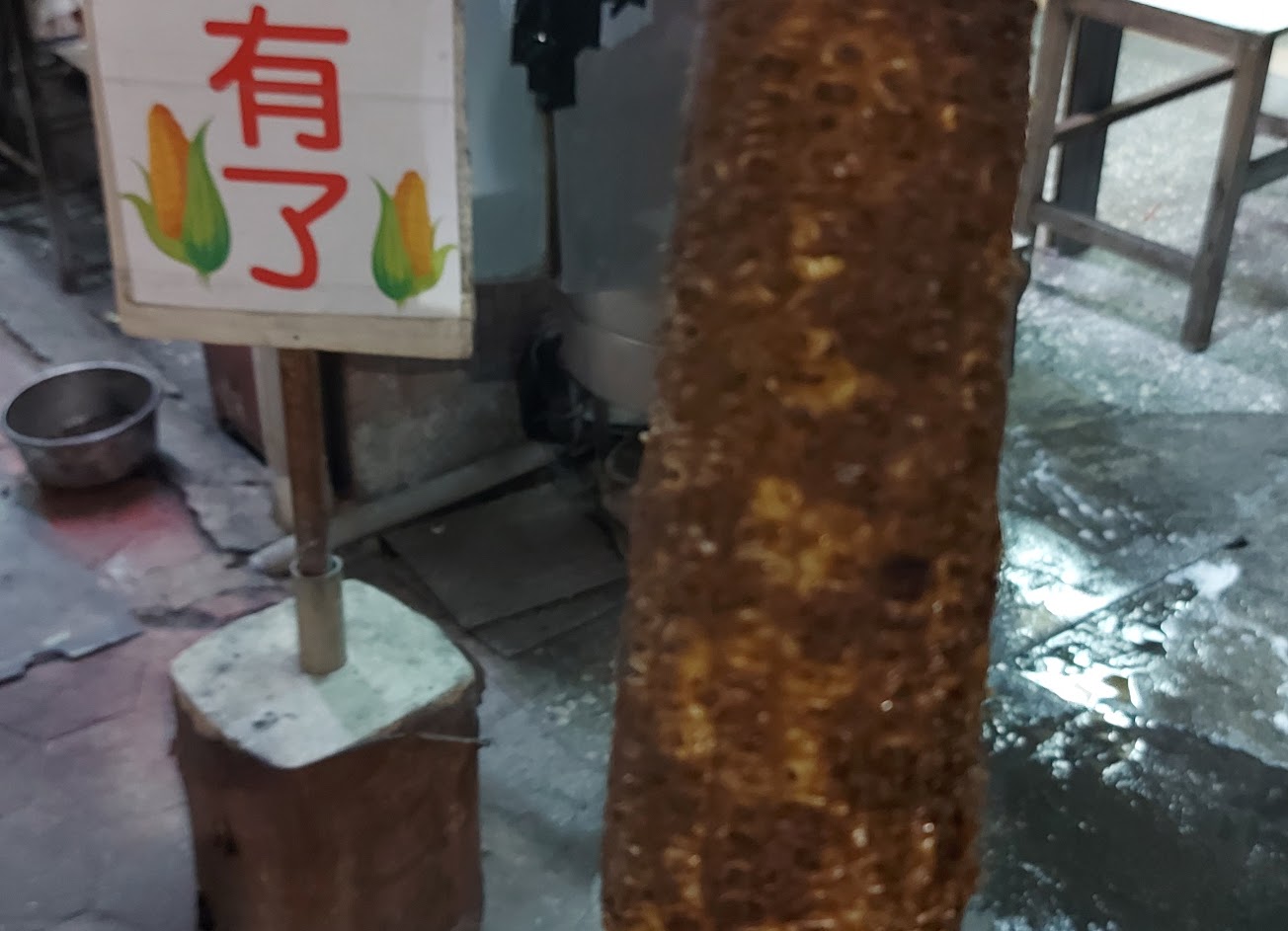 看了評價就索性早上11:40左右抵達,約12:15開始登記烤玉米,排第二位 第11 12支玉米,要3點才能取貨, 拿到烤玉米 香味四溢,很像烤魷魚,但是仔細一看發現 其實內部都是黑色燒焦,只不過有塗上一層應該是花生的特製醬料(好吃但好肥?)來蓋過燒焦部分,這概念就好像自己在烤肉烤焦了,應該都不太敢吃,不過該上一層厚實的醬料應該就可以視而不見~想想這樣健康應該有疑慮。