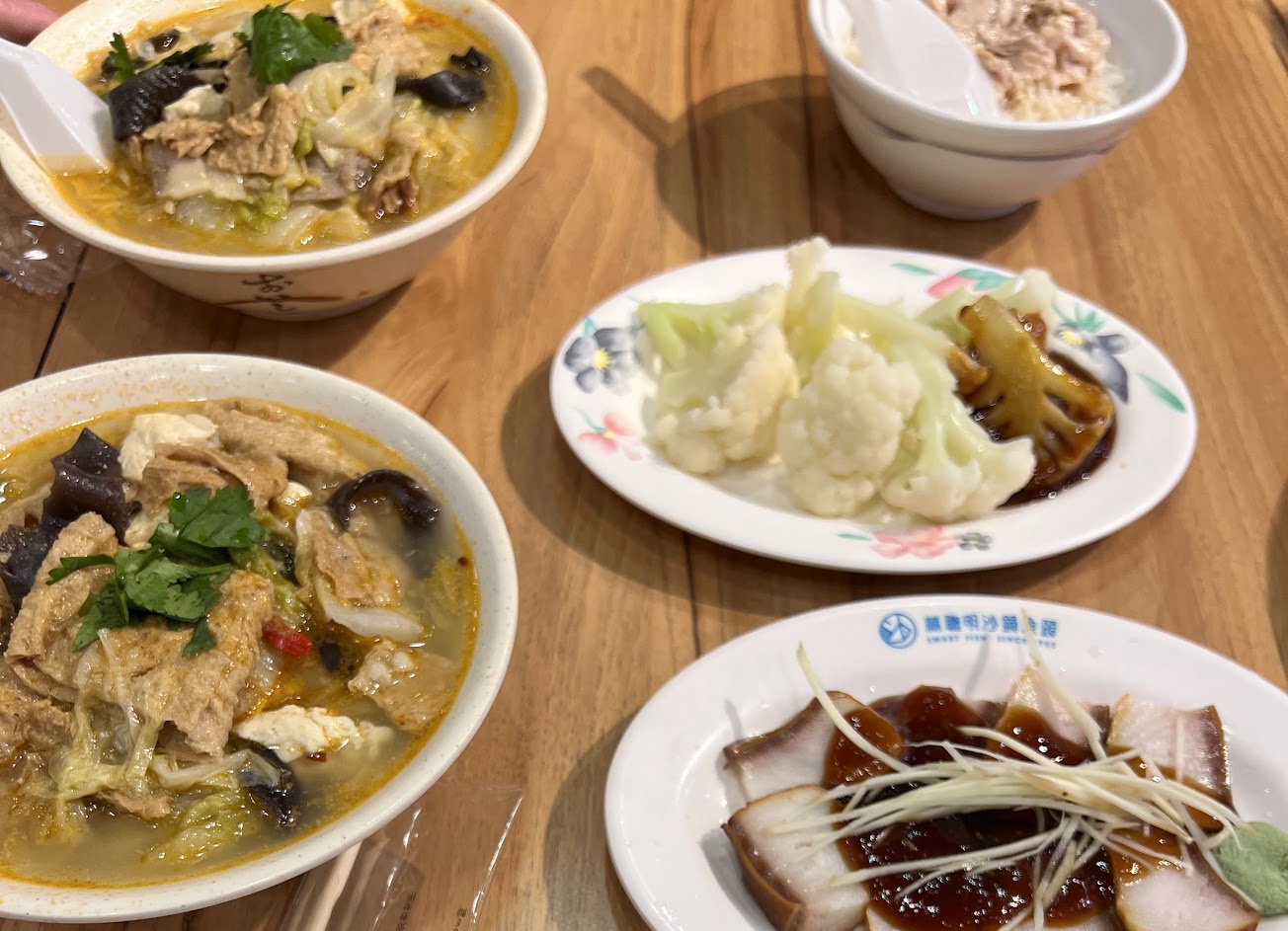 不愧是名店,平日還是要排隊,沙鍋菜+魚肉,魚很軟嫩好吃,沙鍋菜很入味;筊白筍很清甜;蝦仁雖小很有肉,太陽蛋我把它搭配雞肉飯很好吃;清冬粉+沙茶比較不習慣。