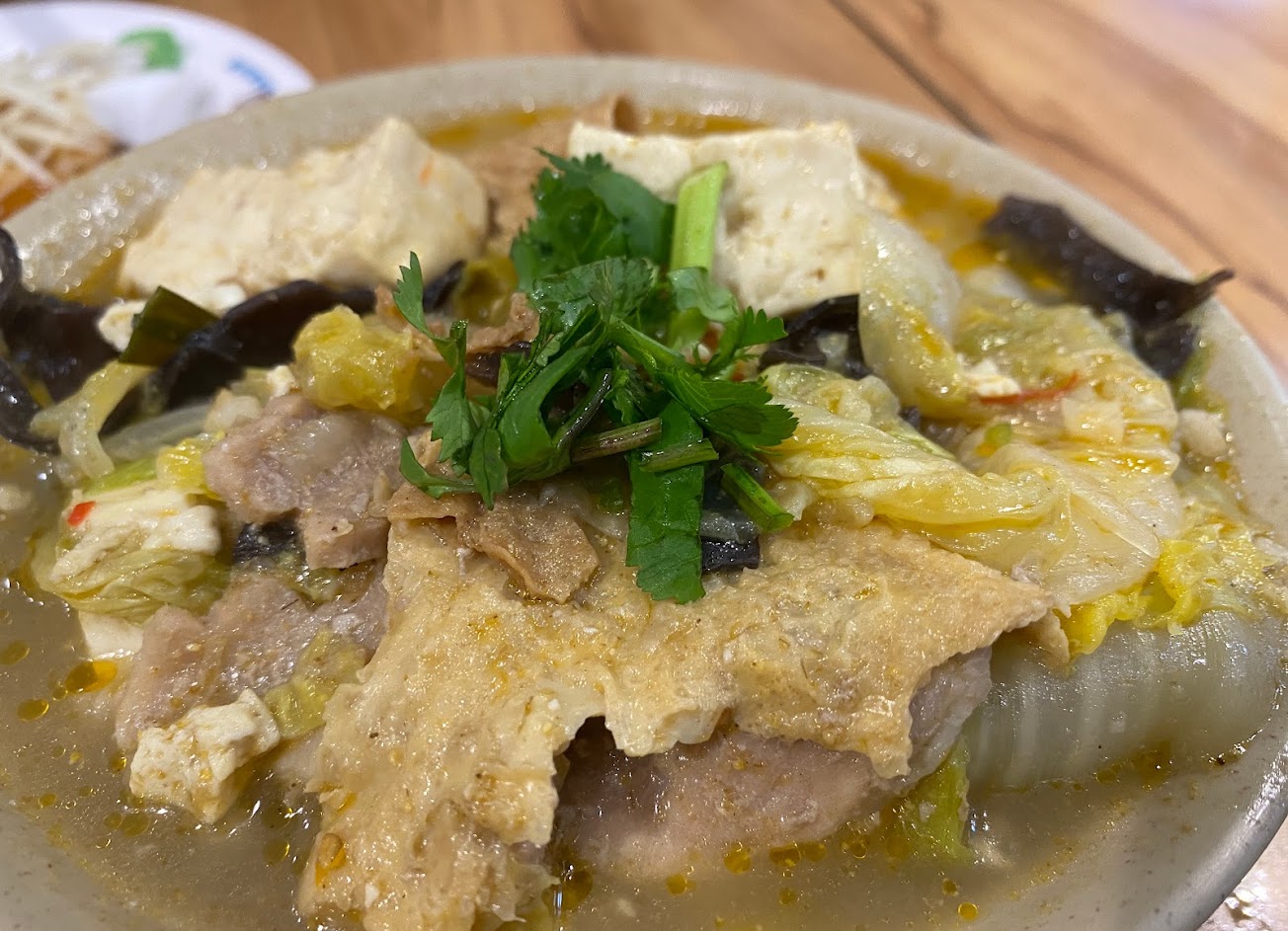 這天在開門接近11點前,內用外帶都已經有排隊人潮,不過很幸運可以在第一批内用,第一批沙鍋菜,湯頭清澈度跟鮮度真的有差,很新鮮,不油不膩口(個人覺得就像火鍋一直滾一直煮,湯頭容易濁濁的,曾經傍晚去總店吃,當時認為口味沒有特別驚豔)