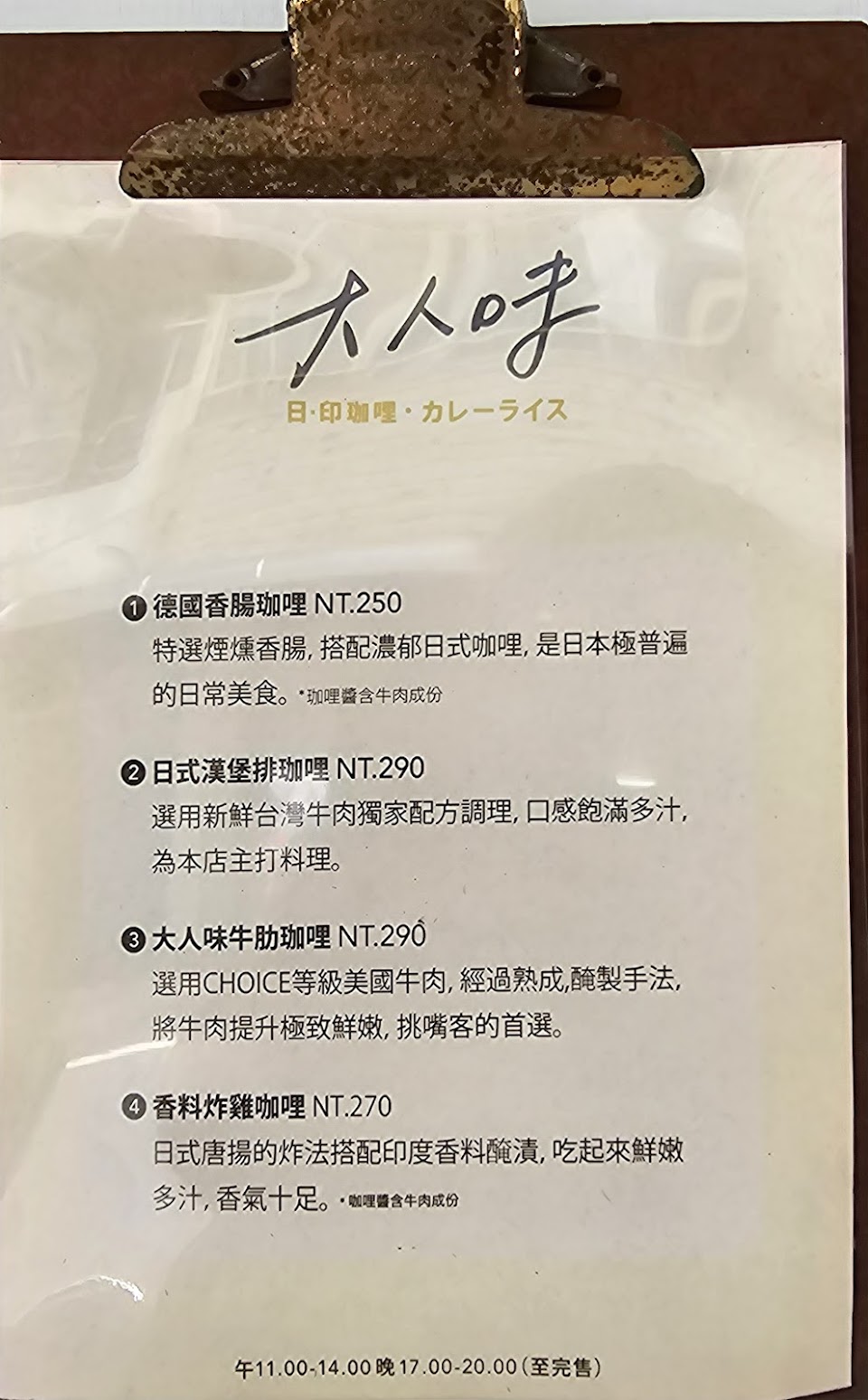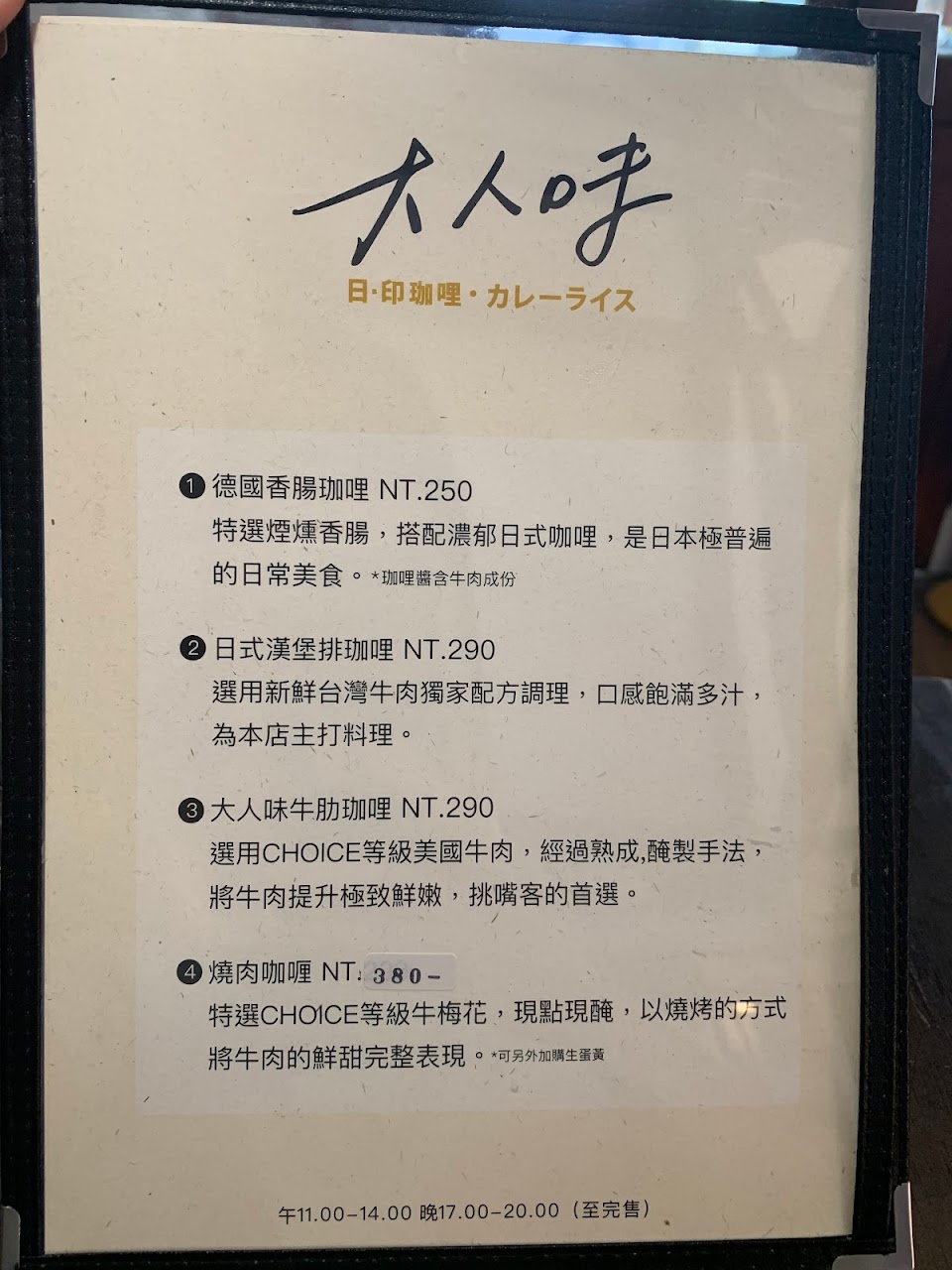 2024最新在地推薦餐廳的菜單_大人味 日.印咖喱的菜單、圖片
