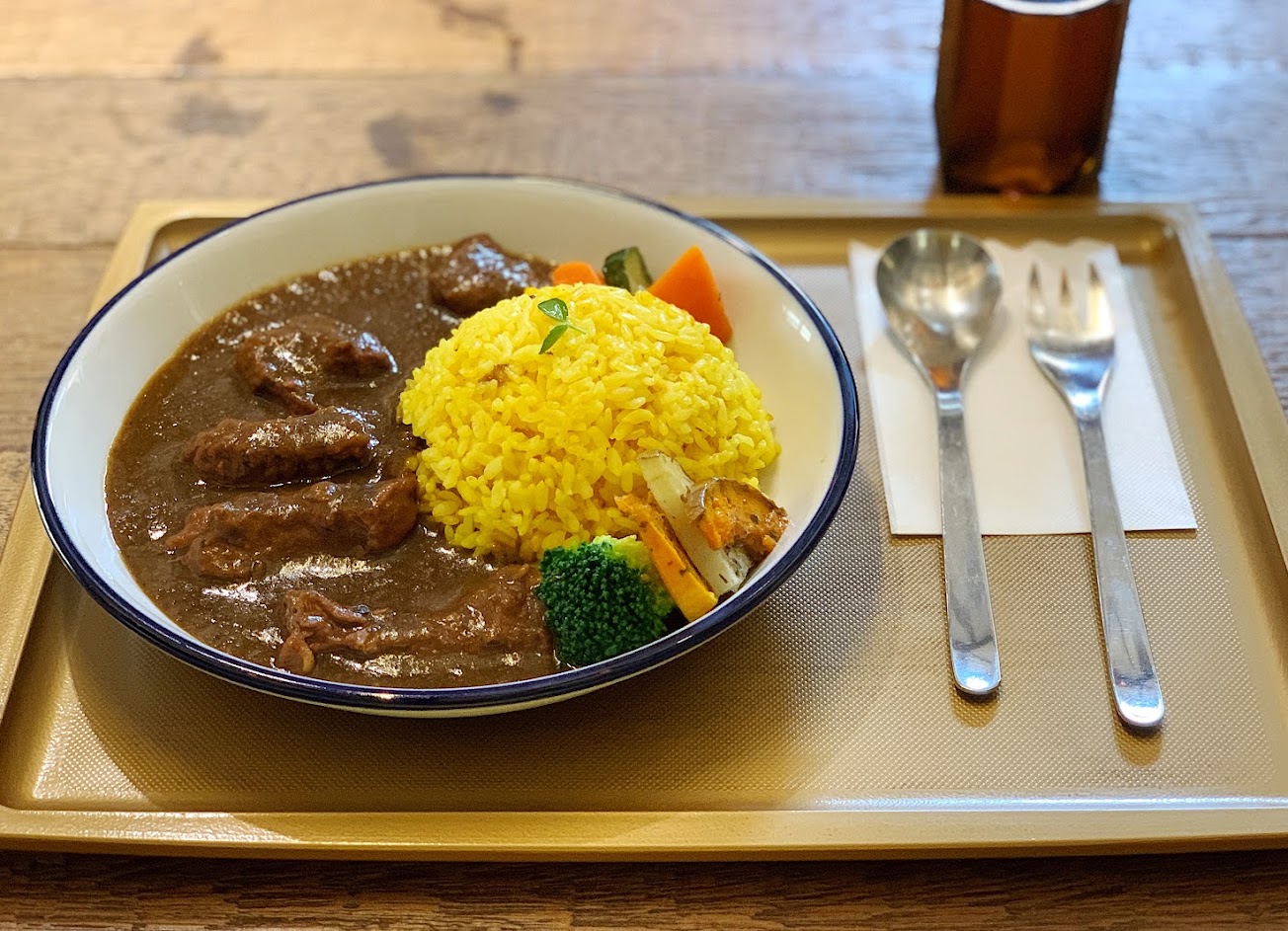 和風咖喱醬汁風味十足,甜、辣、酸味混合,帶有淡淡的香料香氣,搭配燉煮的又軟又嫩的牛肋、沒有過多調味的爐烤蔬菜與薑黃飯。味道濃郁但不絕對不會膩!